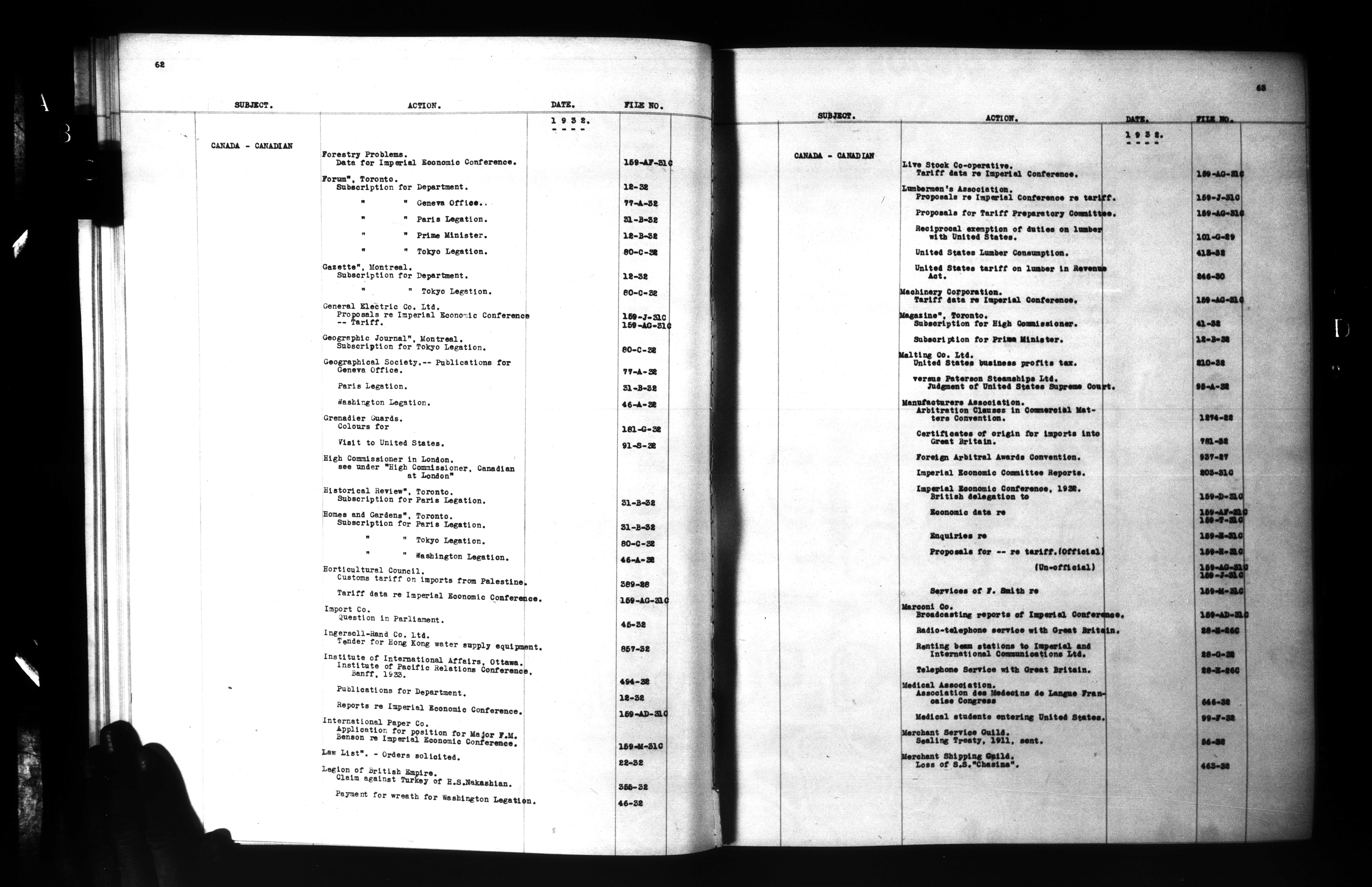 Department of External Affairs: "1939 Series" Central Registry files : Index, 1909-1939 - 6848