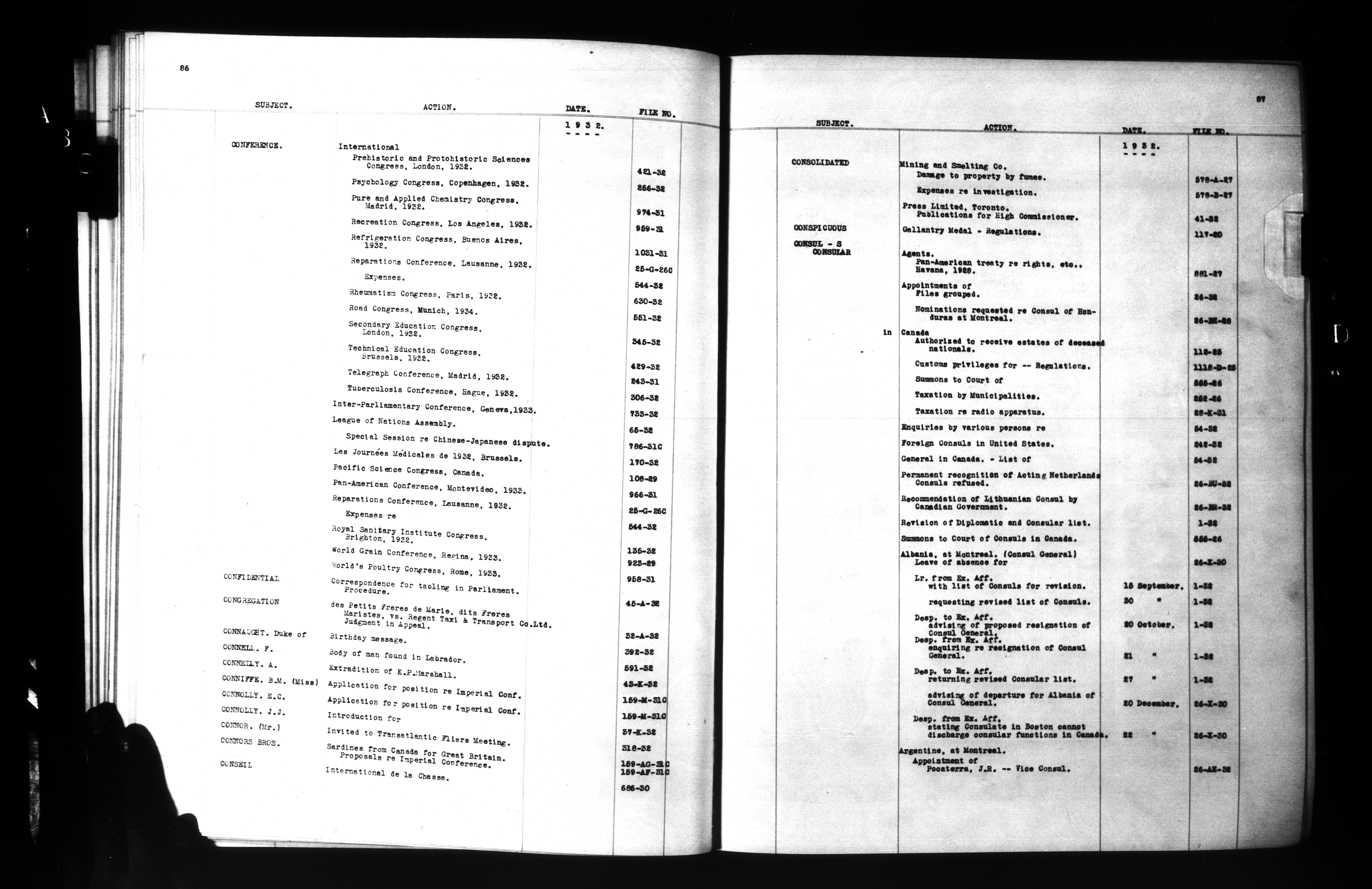 Department of External Affairs: "1939 Series" Central Registry files : Index, 1909-1939 : C-6848