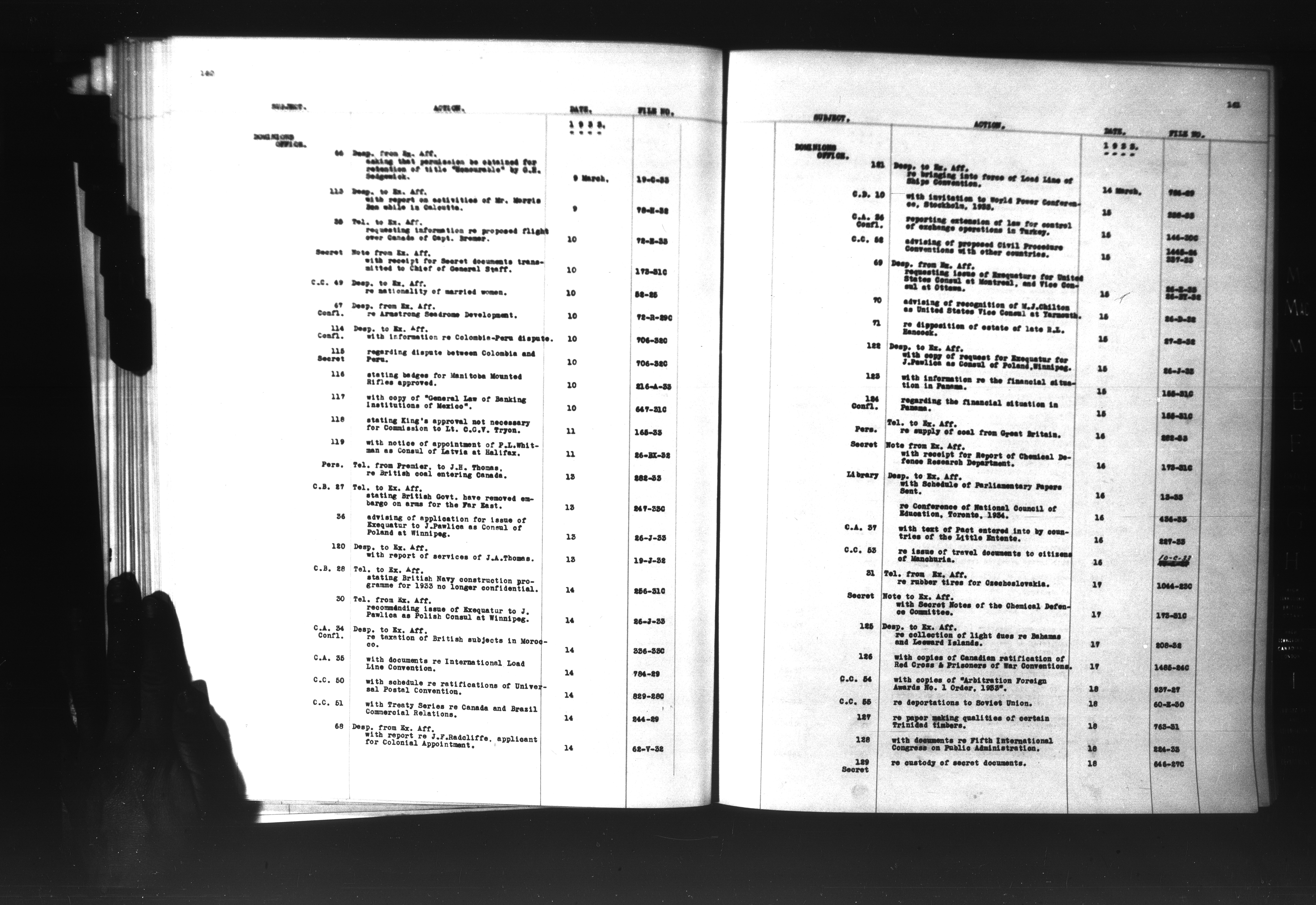 Department of External Affairs: "1939 Series" Central Registry files : Index, 1909-1939 : C-6850