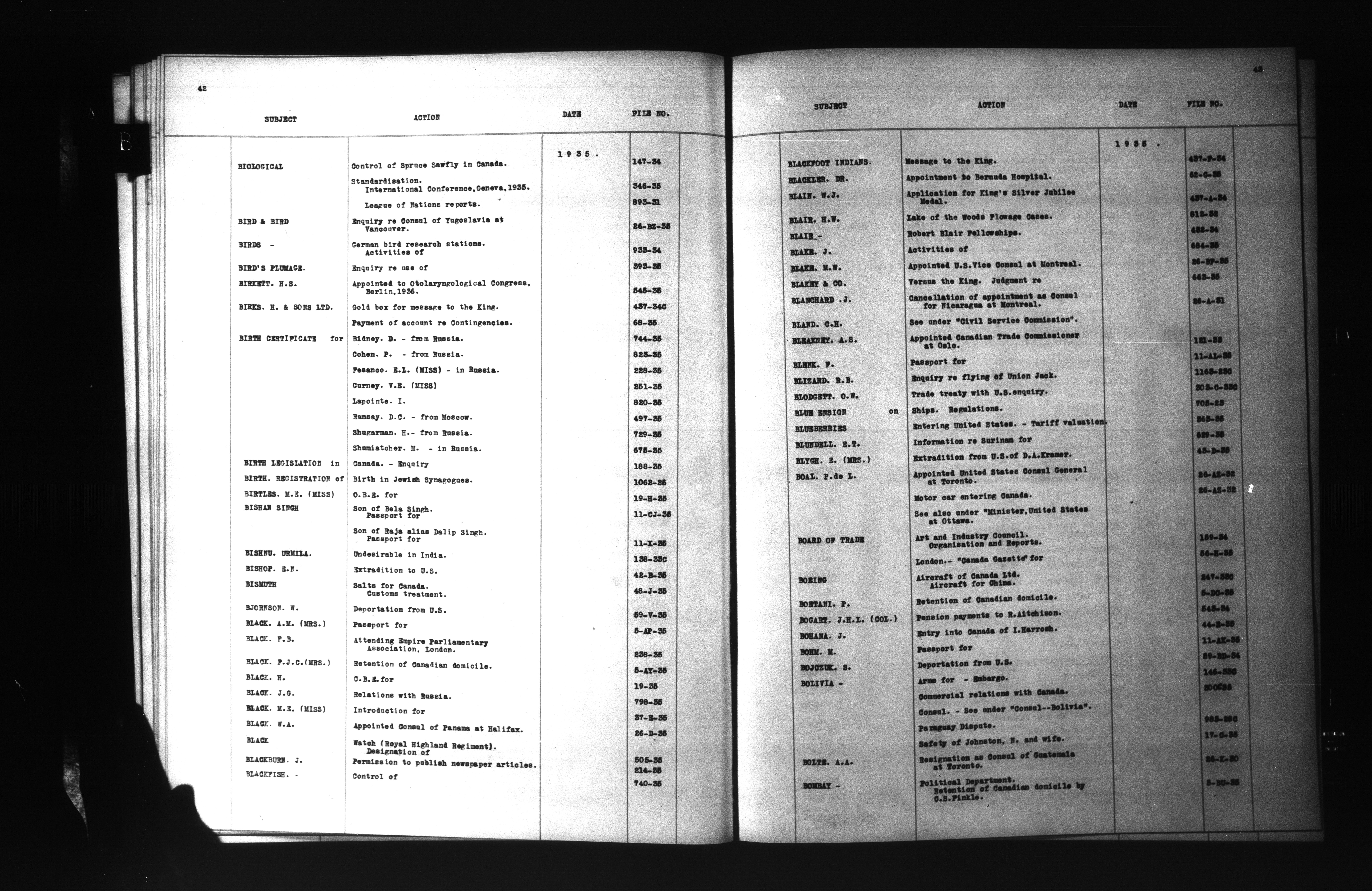 Department of External Affairs: "1939 Series" Central Registry files : Index, 1909-1939 - 6851