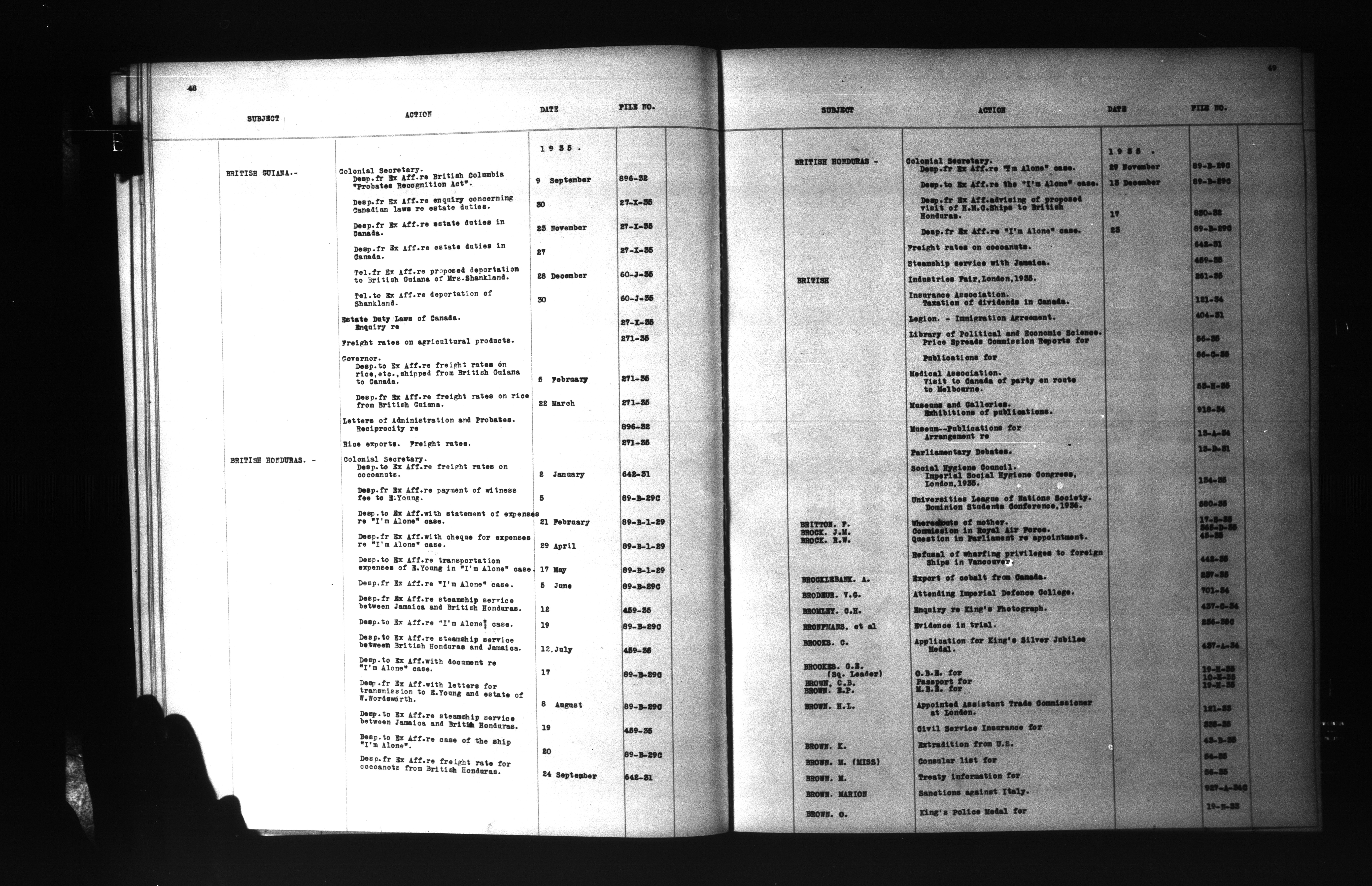 Department of External Affairs: "1939 Series" Central Registry files : Index, 1909-1939 : C-6851