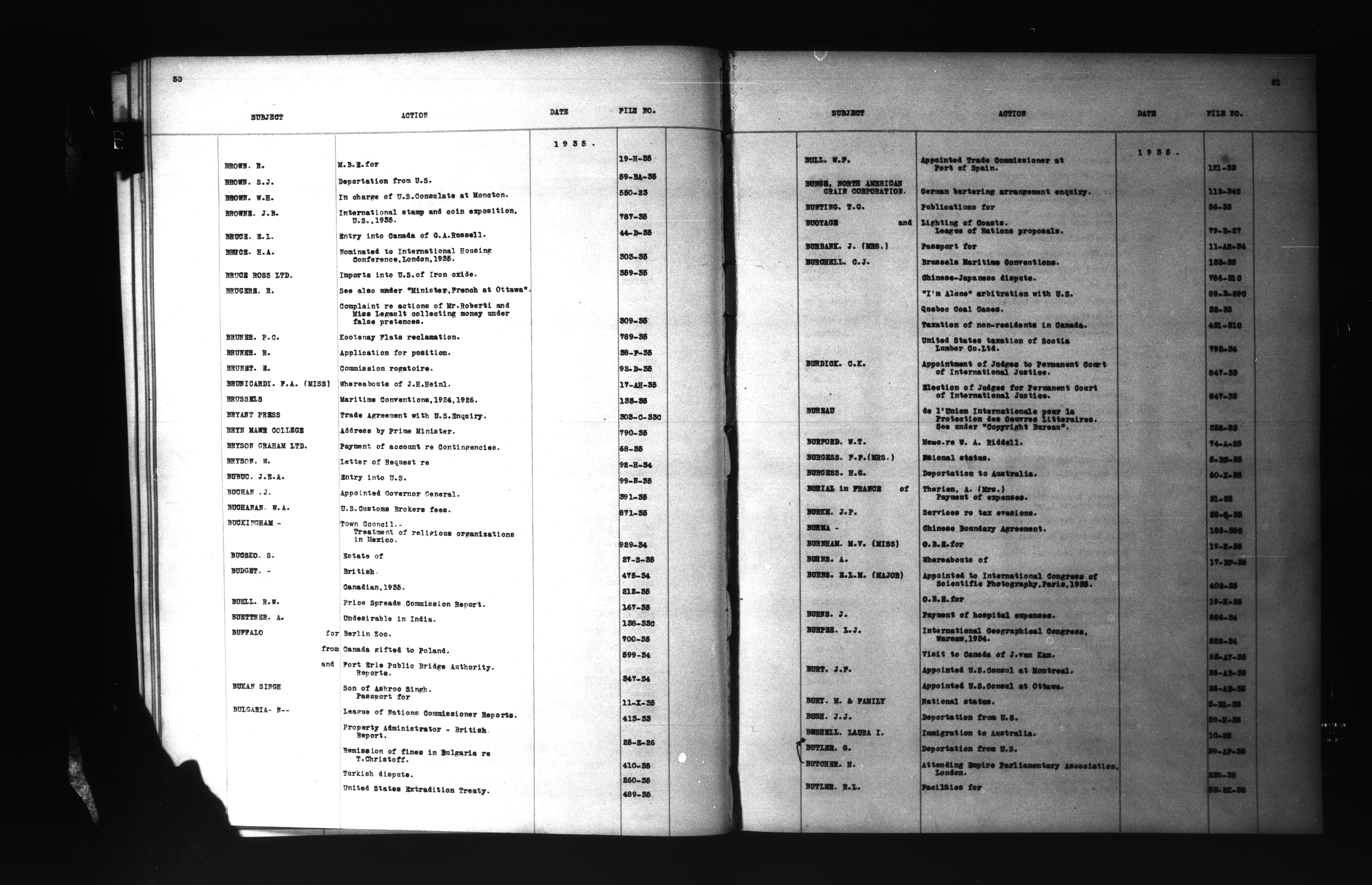 Department of External Affairs: "1939 Series" Central Registry files : Index, 1909-1939 - 6851