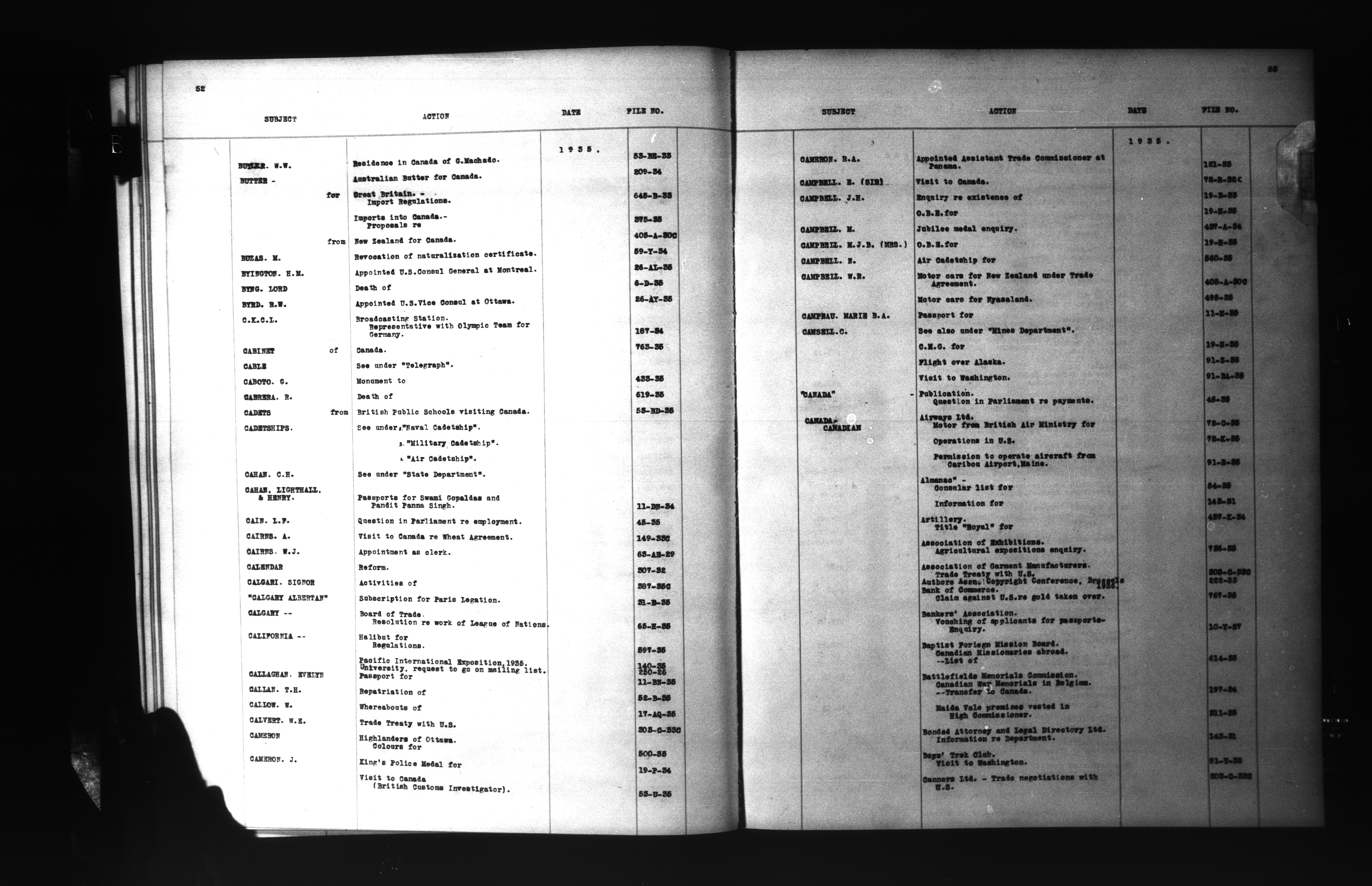 Department of External Affairs: "1939 Series" Central Registry files : Index, 1909-1939 - 6851