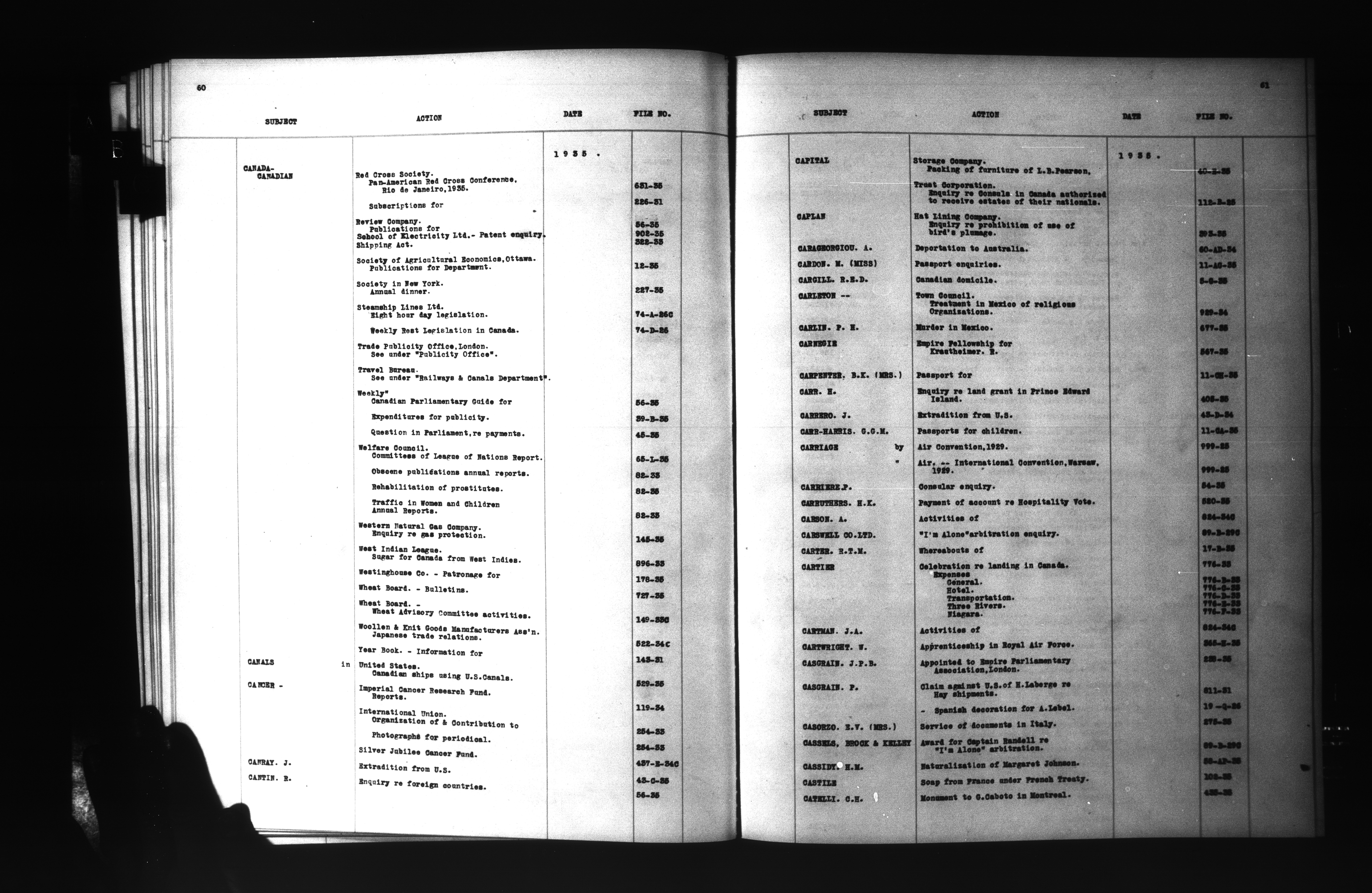Department of External Affairs: "1939 Series" Central Registry files : Index, 1909-1939 - 6851