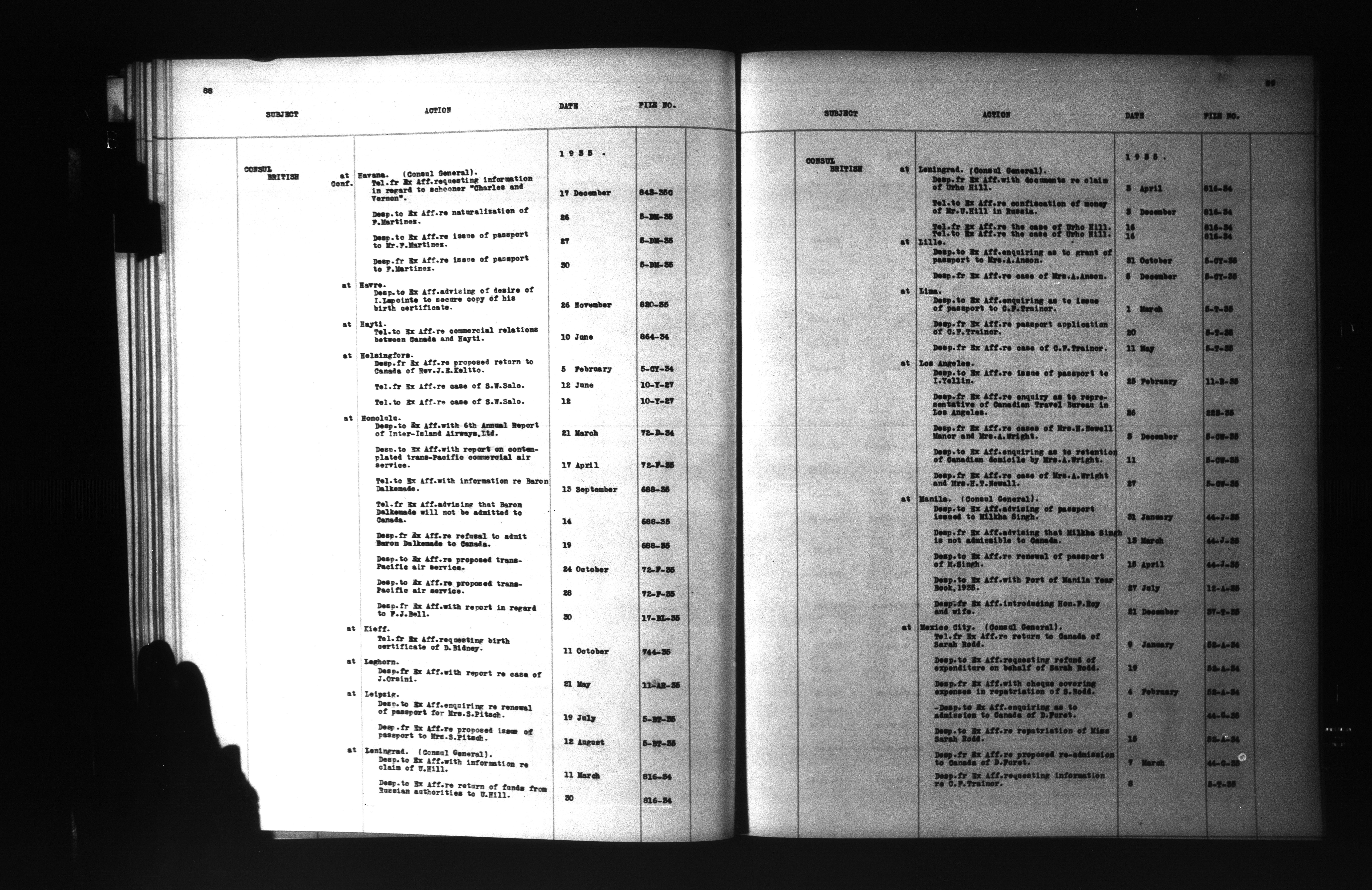 Department of External Affairs: "1939 Series" Central Registry files : Index, 1909-1939 : C-6851