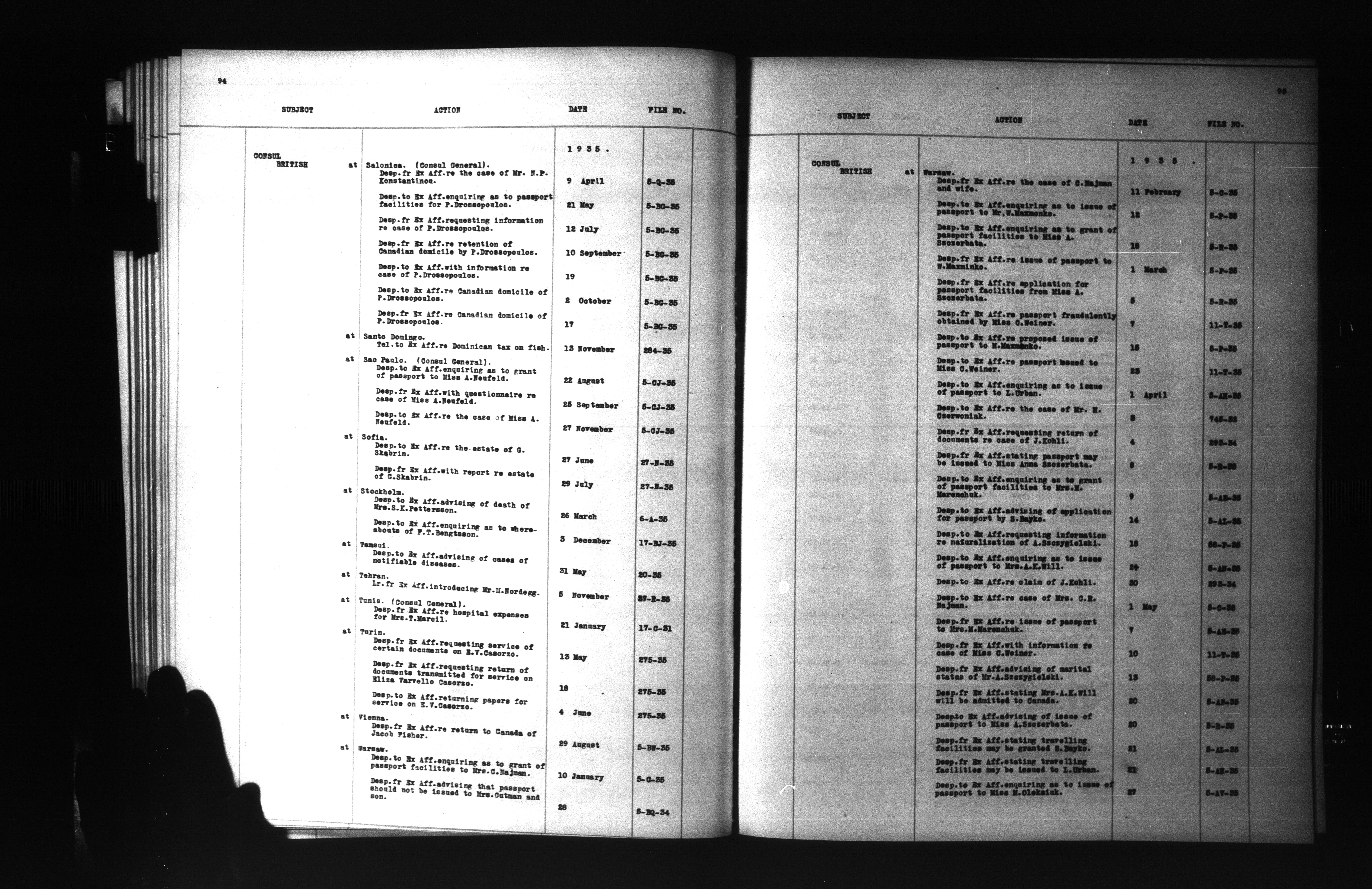 Department of External Affairs: "1939 Series" Central Registry files : Index, 1909-1939 : C-6851