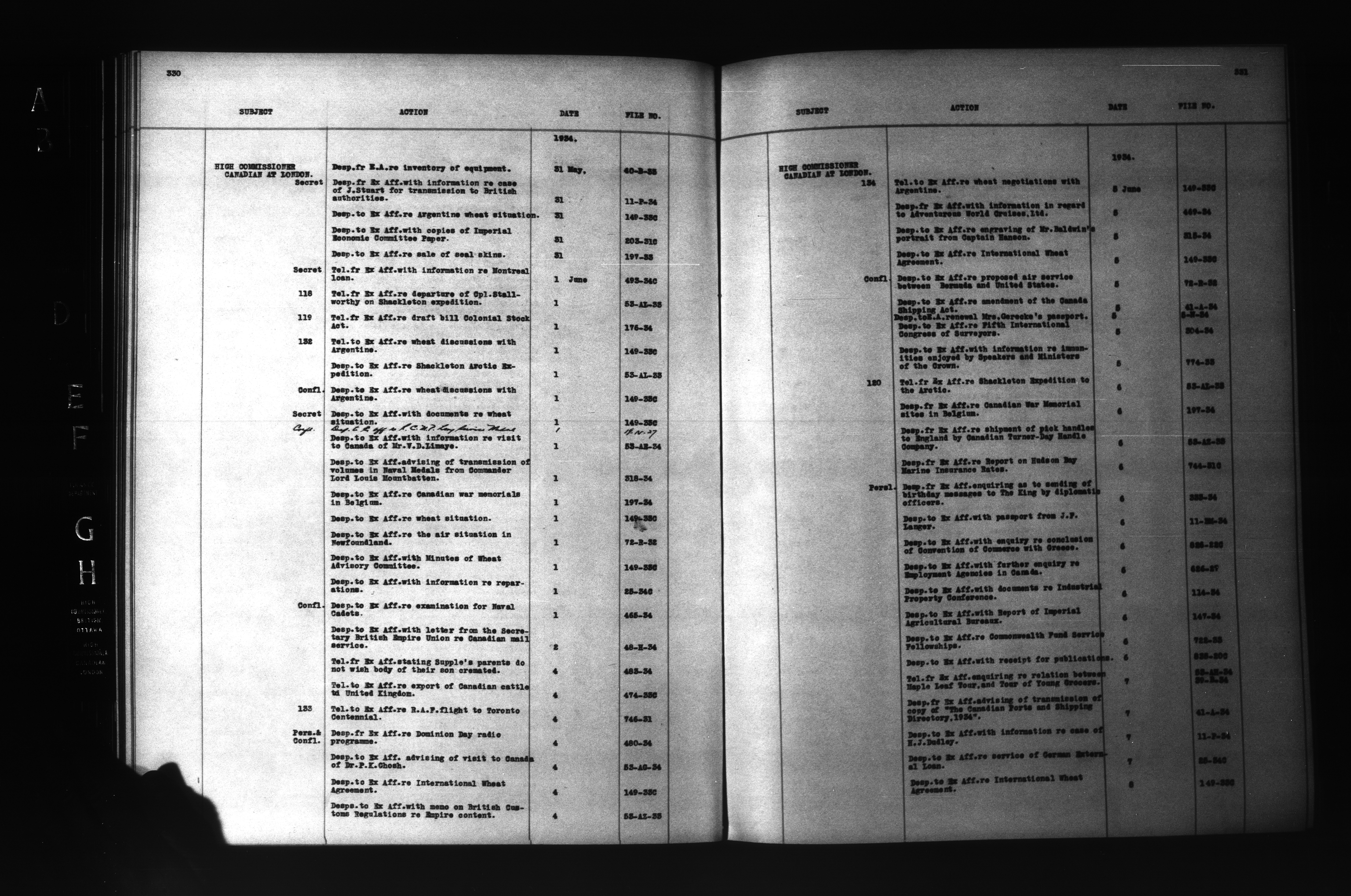 Department of External Affairs: "1939 Series" Central Registry files : Index, 1909-1939 : C-6851