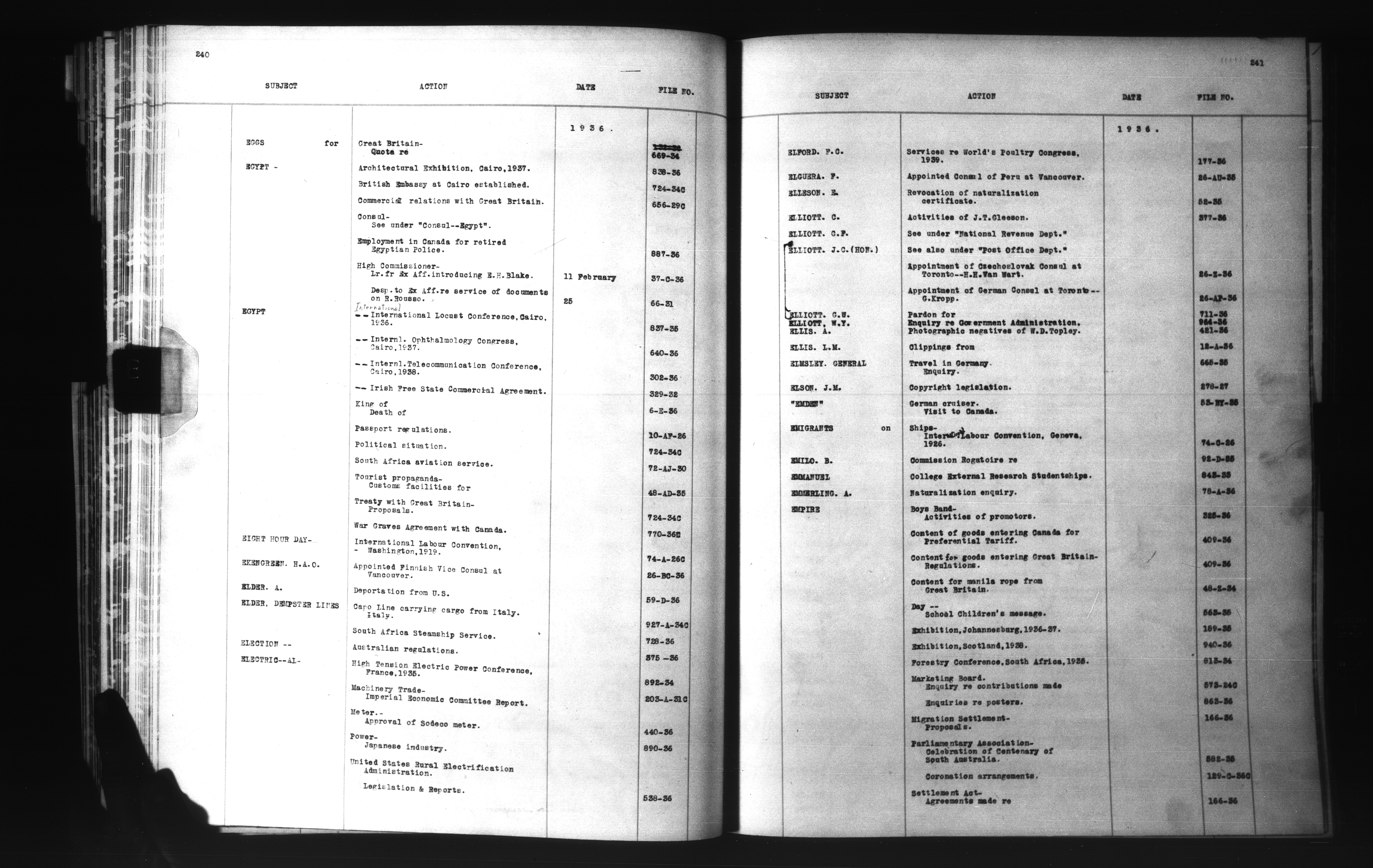 Department of External Affairs: "1939 Series" Central Registry files : Index, 1909-1939 - 6853