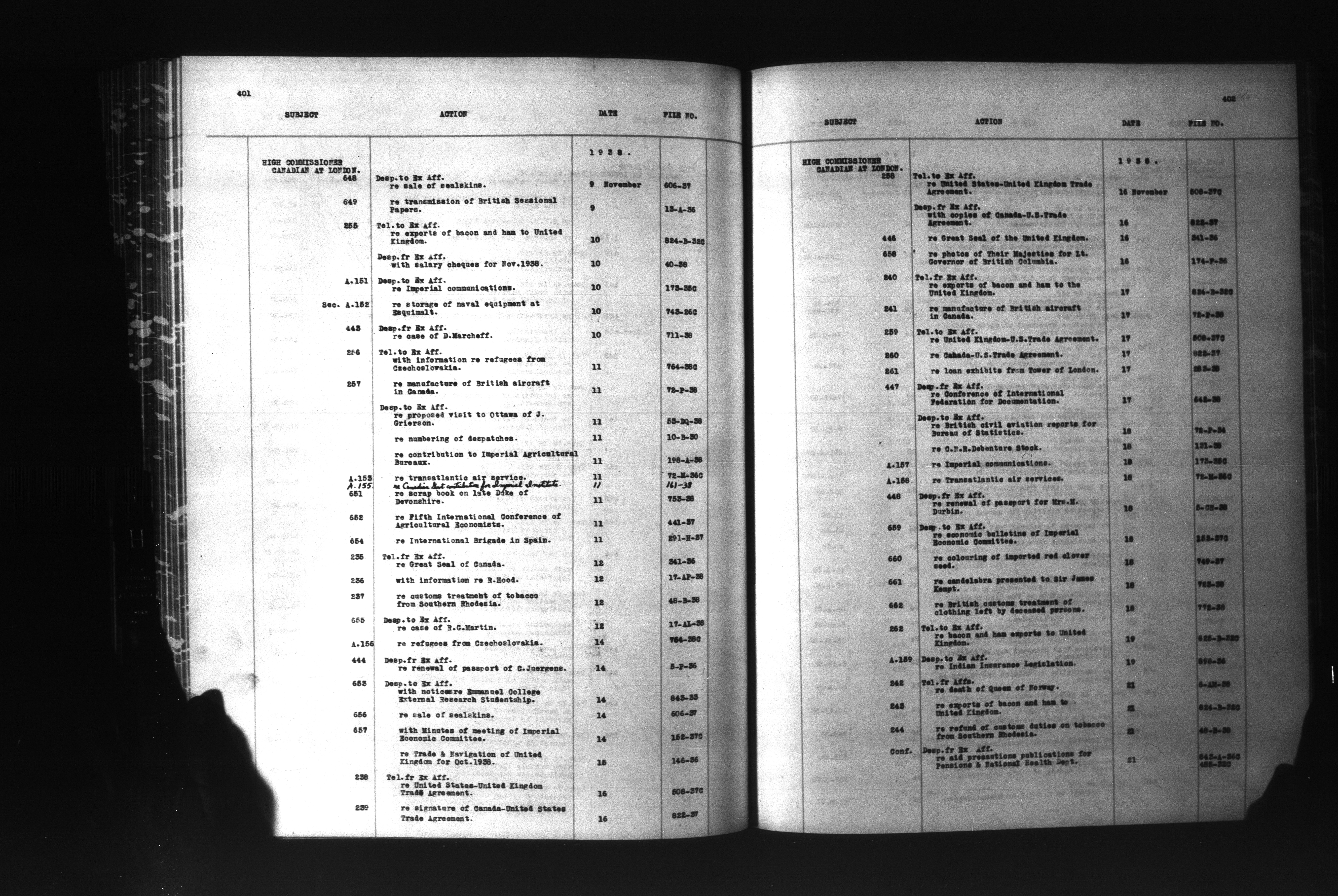 Department of External Affairs: "1939 Series" Central Registry files : Index, 1909-1939 - 6855