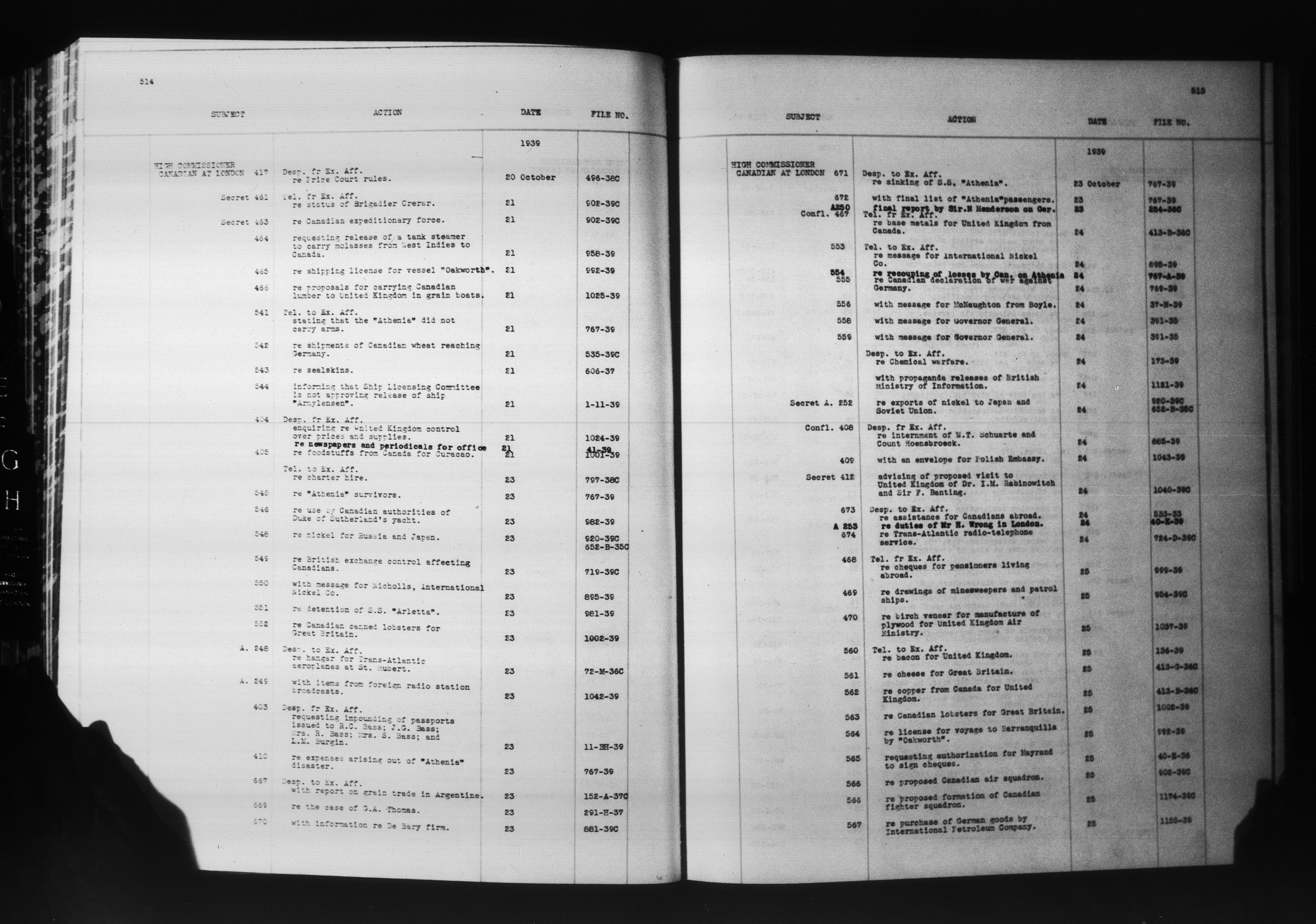 Department of External Affairs: "1939 Series" Central Registry files : Index, 1909-1939 : C-6857