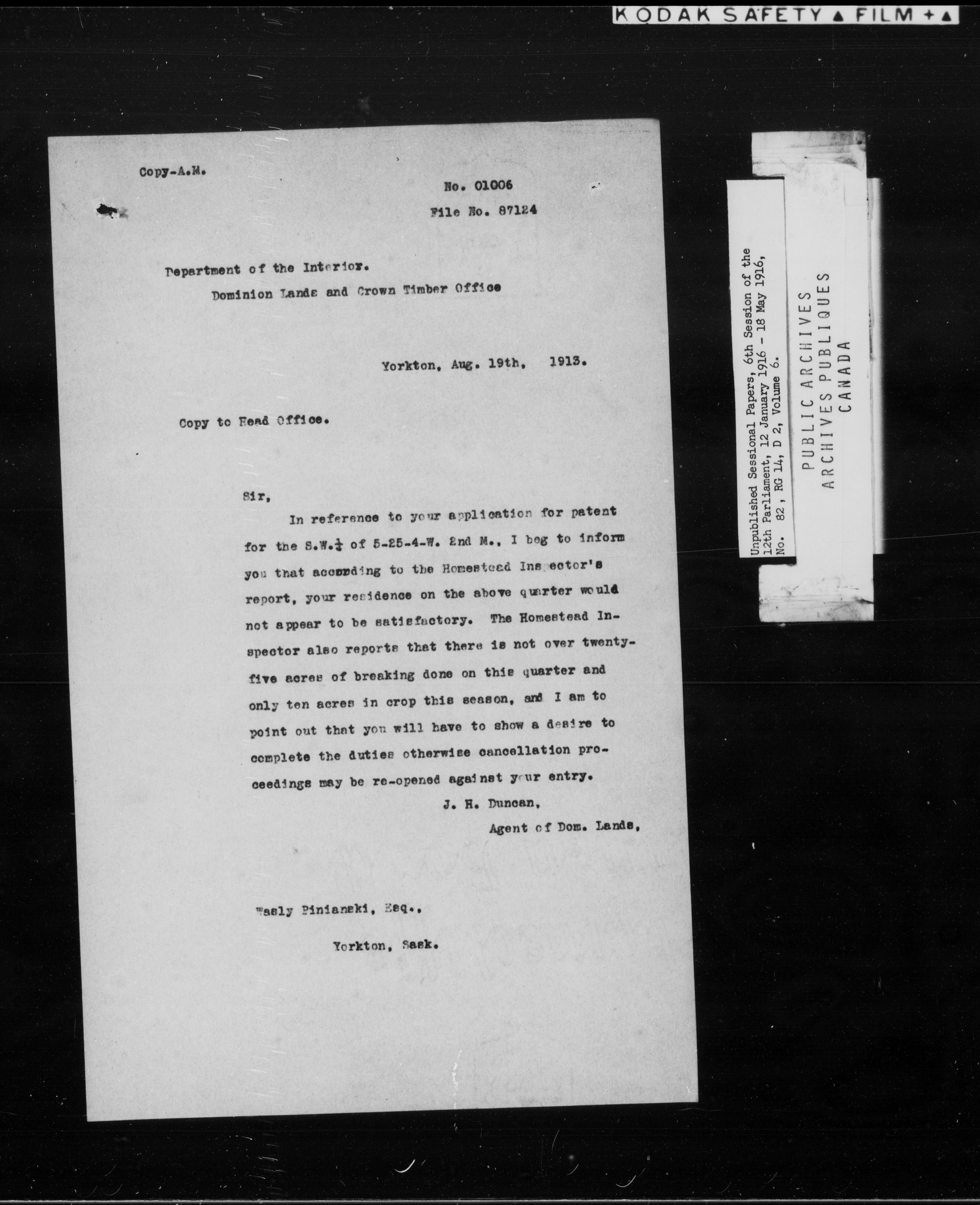 Unpublished Sessional Papers; 6th Session of the 12th Parliament, 12 Jan. 1916-18 May 1916 - 6920