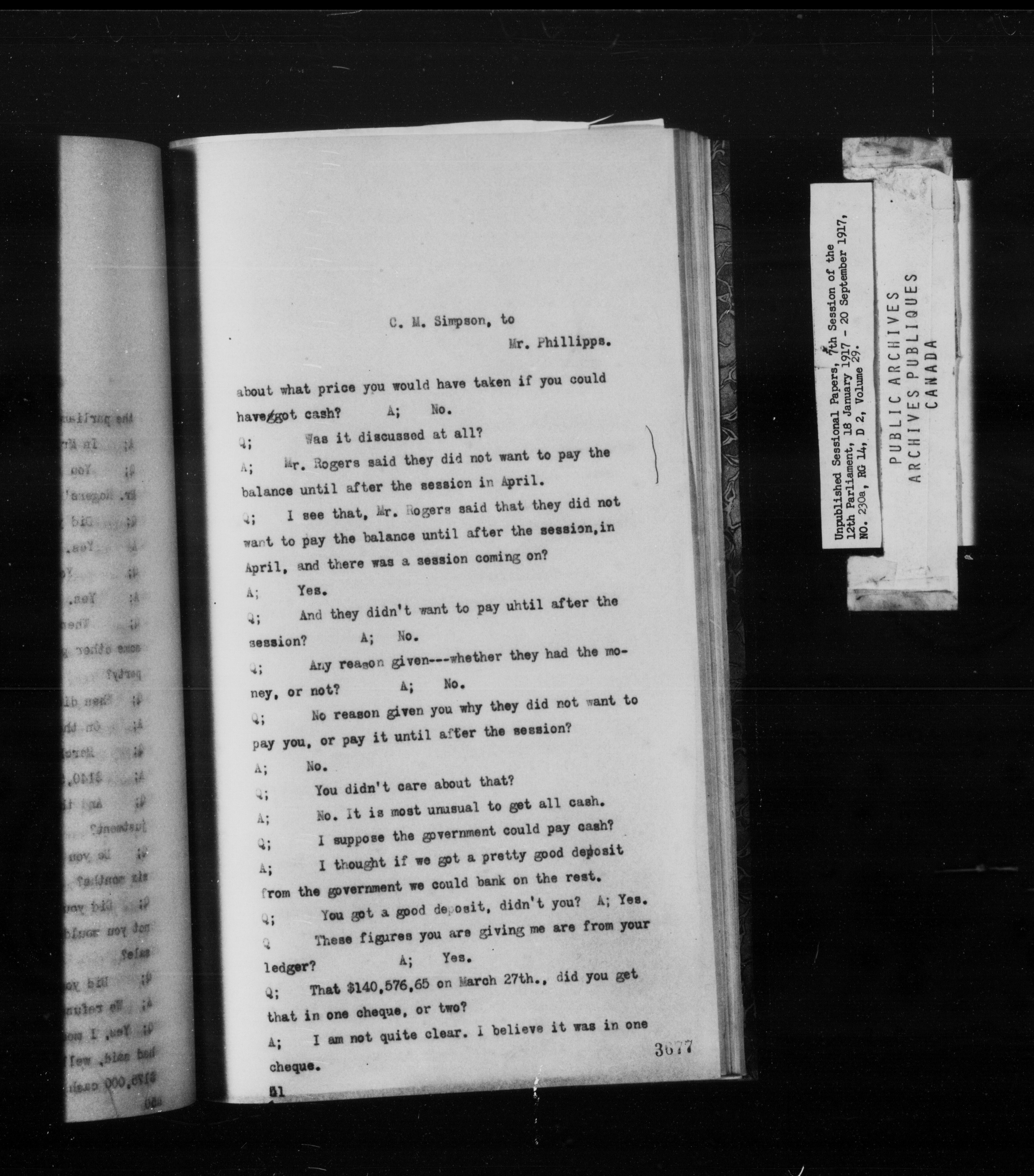 Unpublished Sessional Papers; 7th Session of the 12th Parliament, 18 Jan. 1917-20 Sept. 1917 - 6931