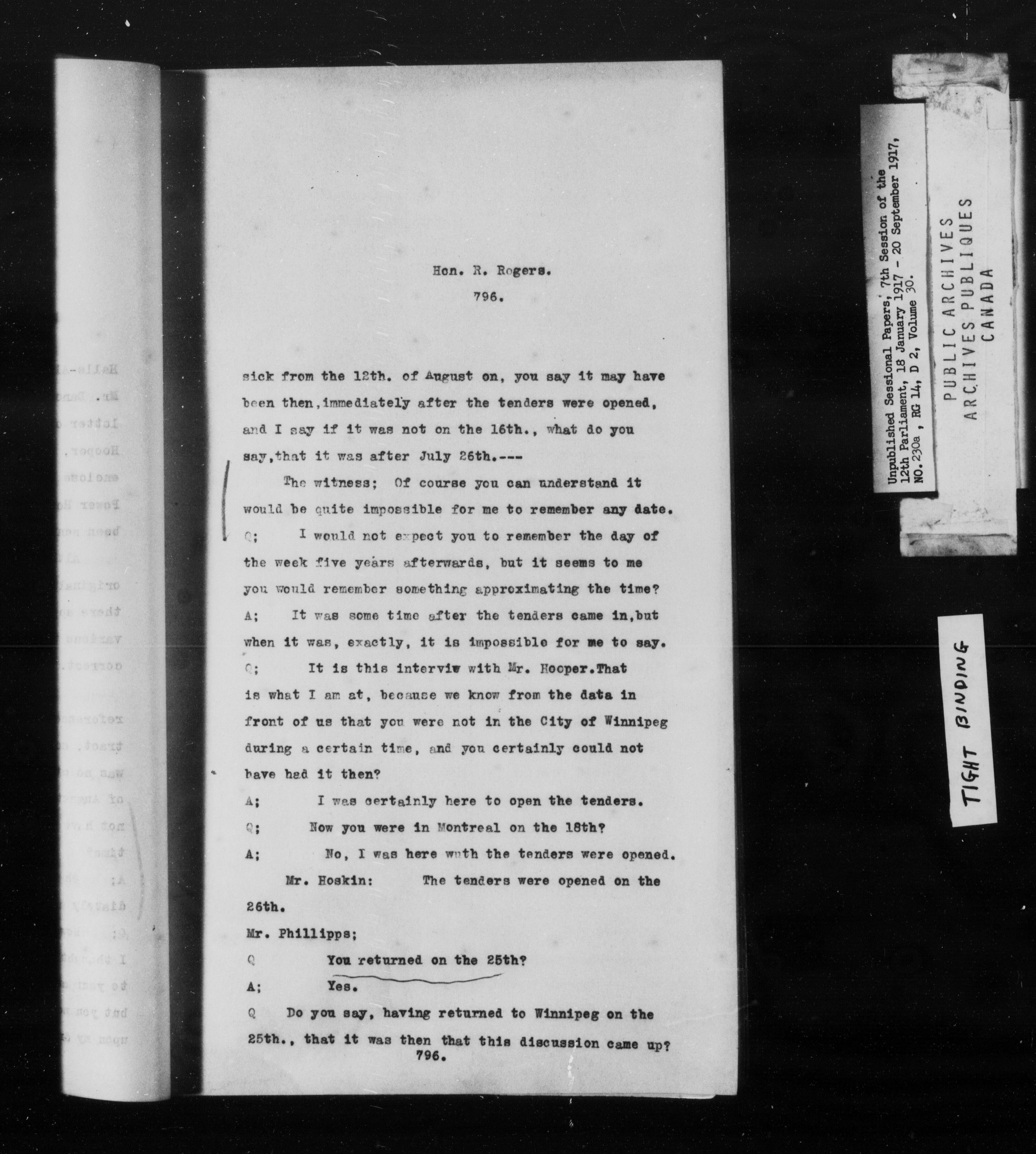 Unpublished Sessional Papers; 7th Session of the 12th Parliament, 18 Jan. 1917-20 Sept. 1917 - 6933