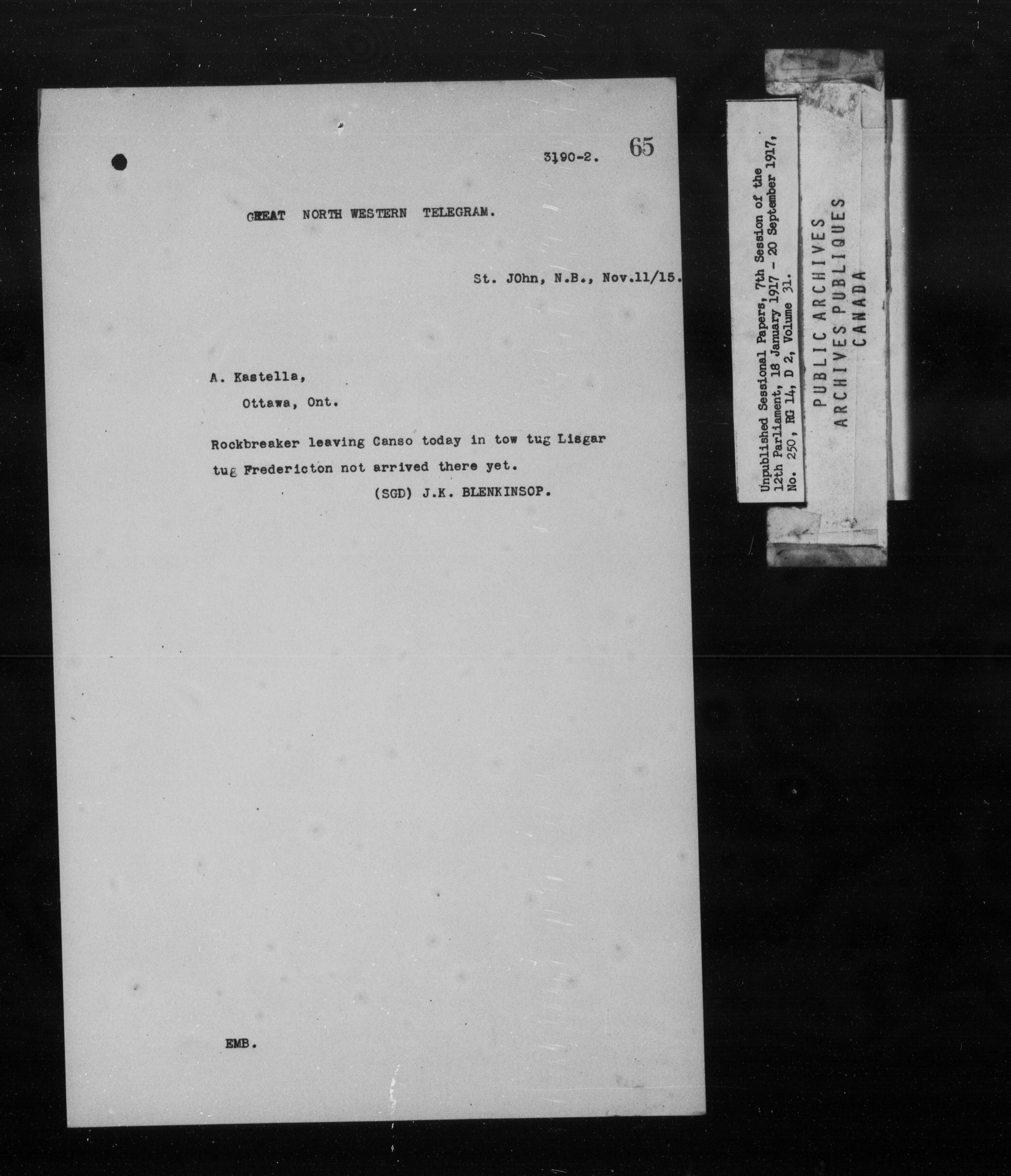 Unpublished Sessional Papers; 7th Session of the 12th Parliament, 18 Jan. 1917-20 Sept. 1917 - 6934