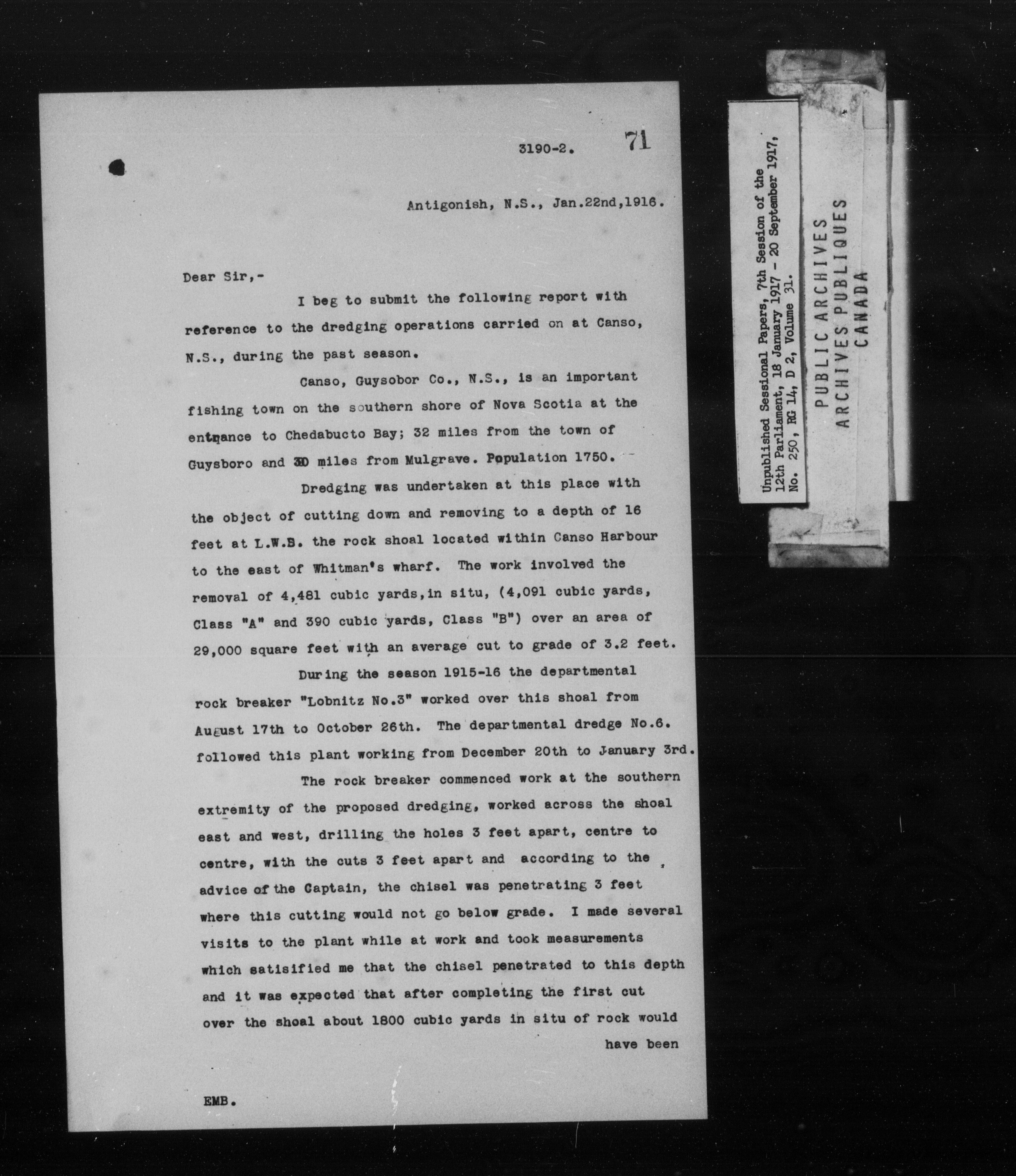 Unpublished Sessional Papers; 7th Session of the 12th Parliament, 18 Jan. 1917-20 Sept. 1917 - 6934