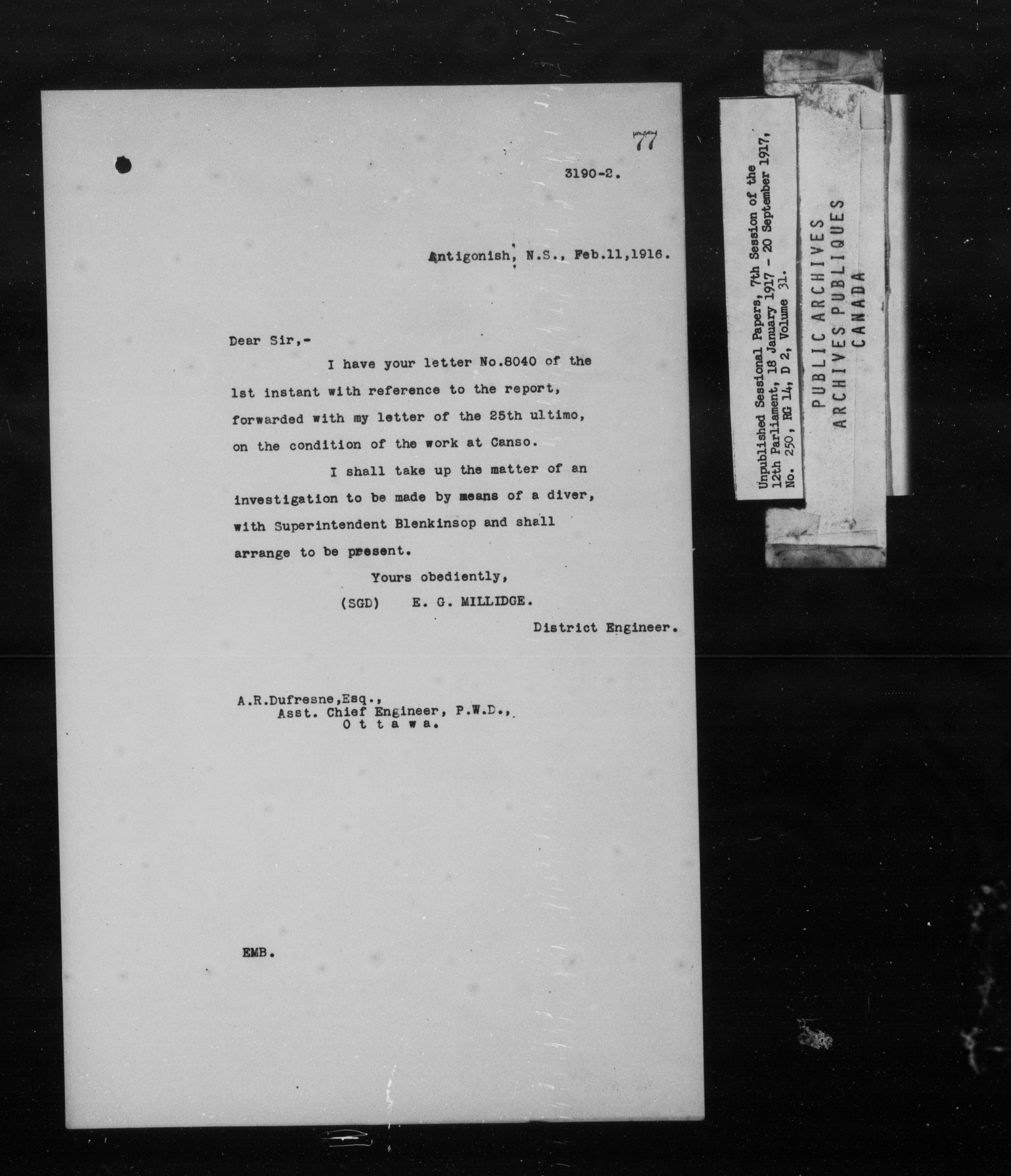 Unpublished Sessional Papers; 7th Session of the 12th Parliament, 18 Jan. 1917-20 Sept. 1917 - 6934