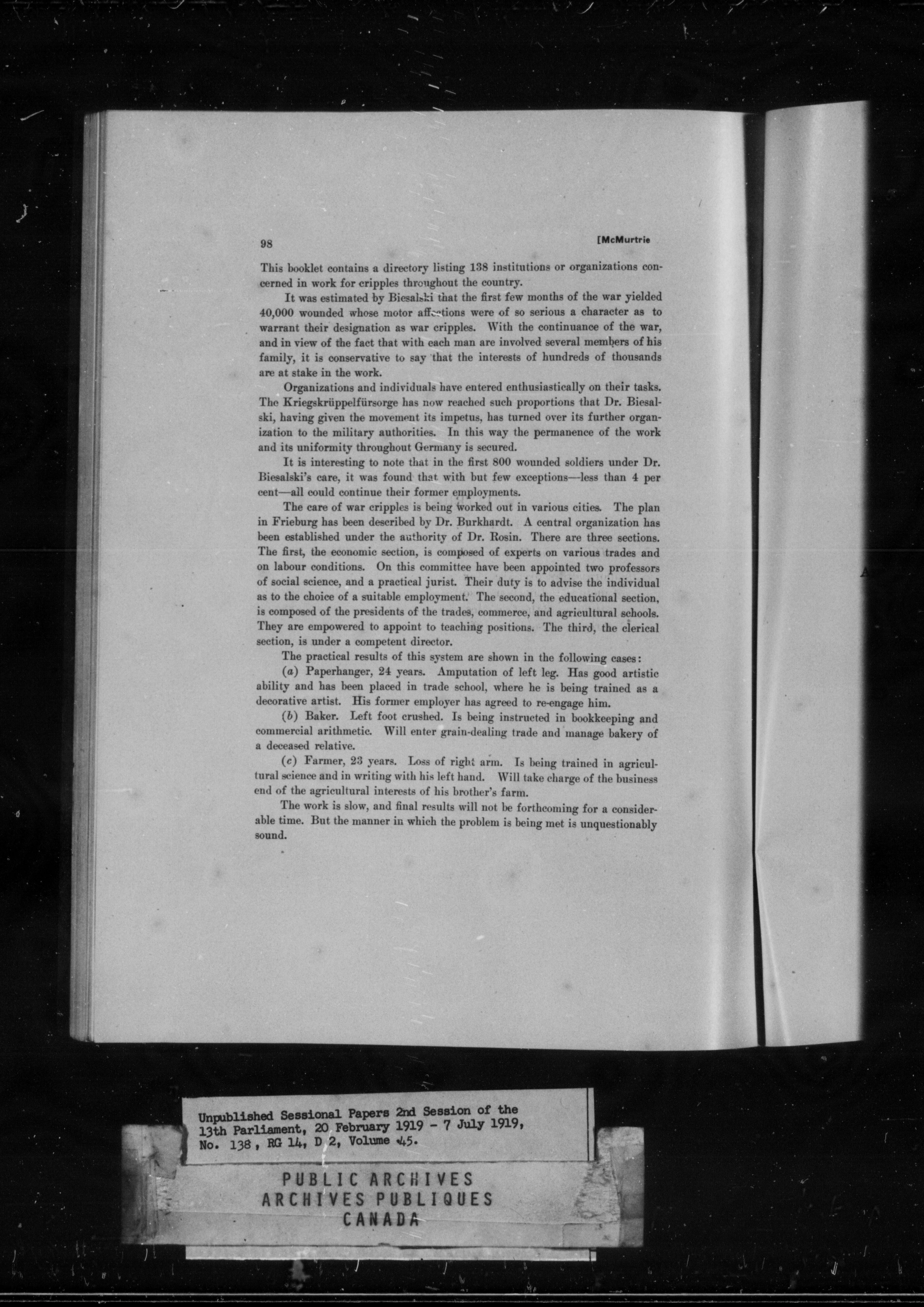 Unpublished Sessional Papers; 2nd Session of the 14th Parliament, 31 Jan. 1923-30 June 1923 - 6938