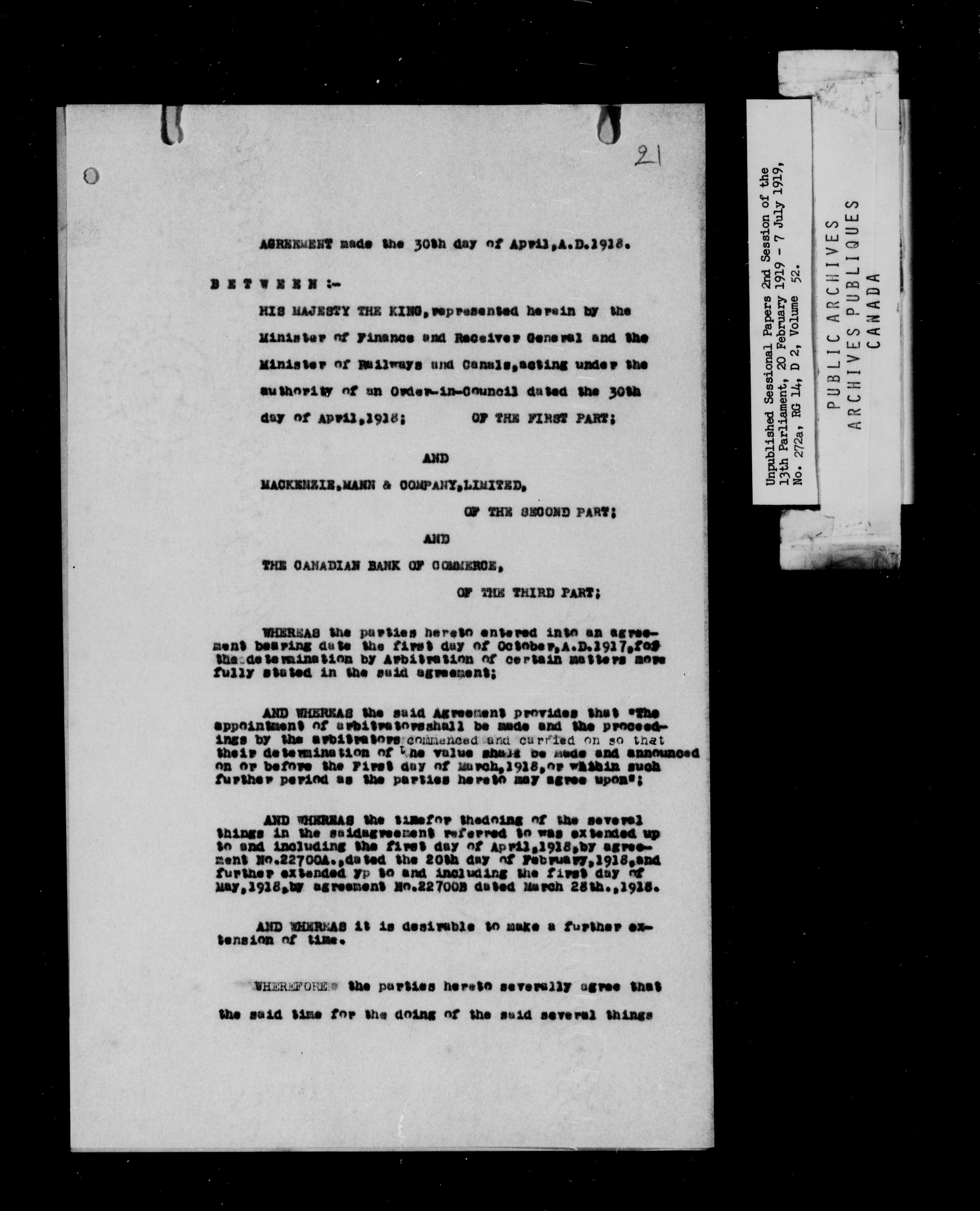 Unpublished Sessional Papers; 2nd Session of the 13th Parliament, 20 Feb. 1919-7 July 1919 - 6944