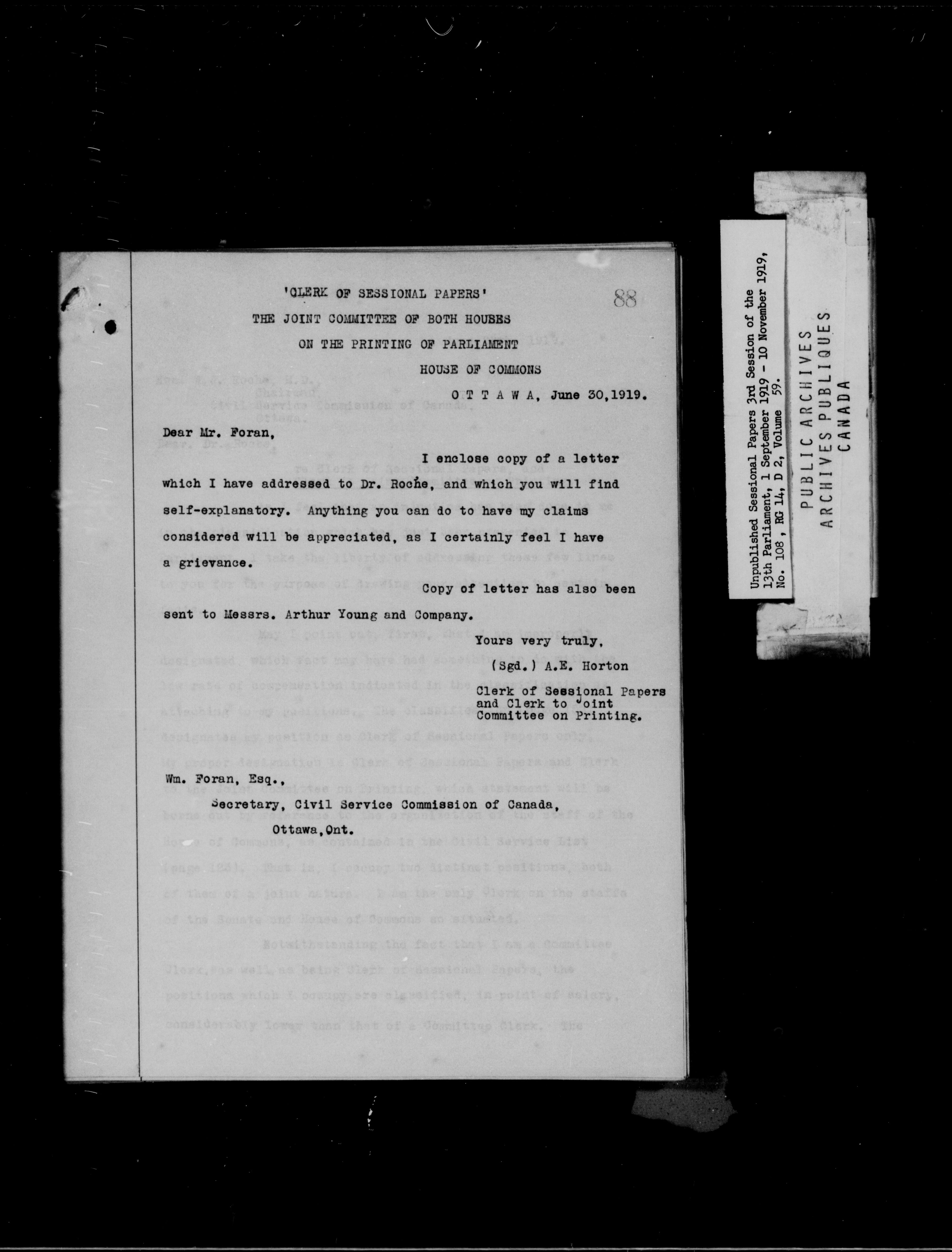 Unpublished Sessional Papers; 3rd Session of the 13th Parliament, 1 Sept. 1919-10 Nov. 1919 - 6946