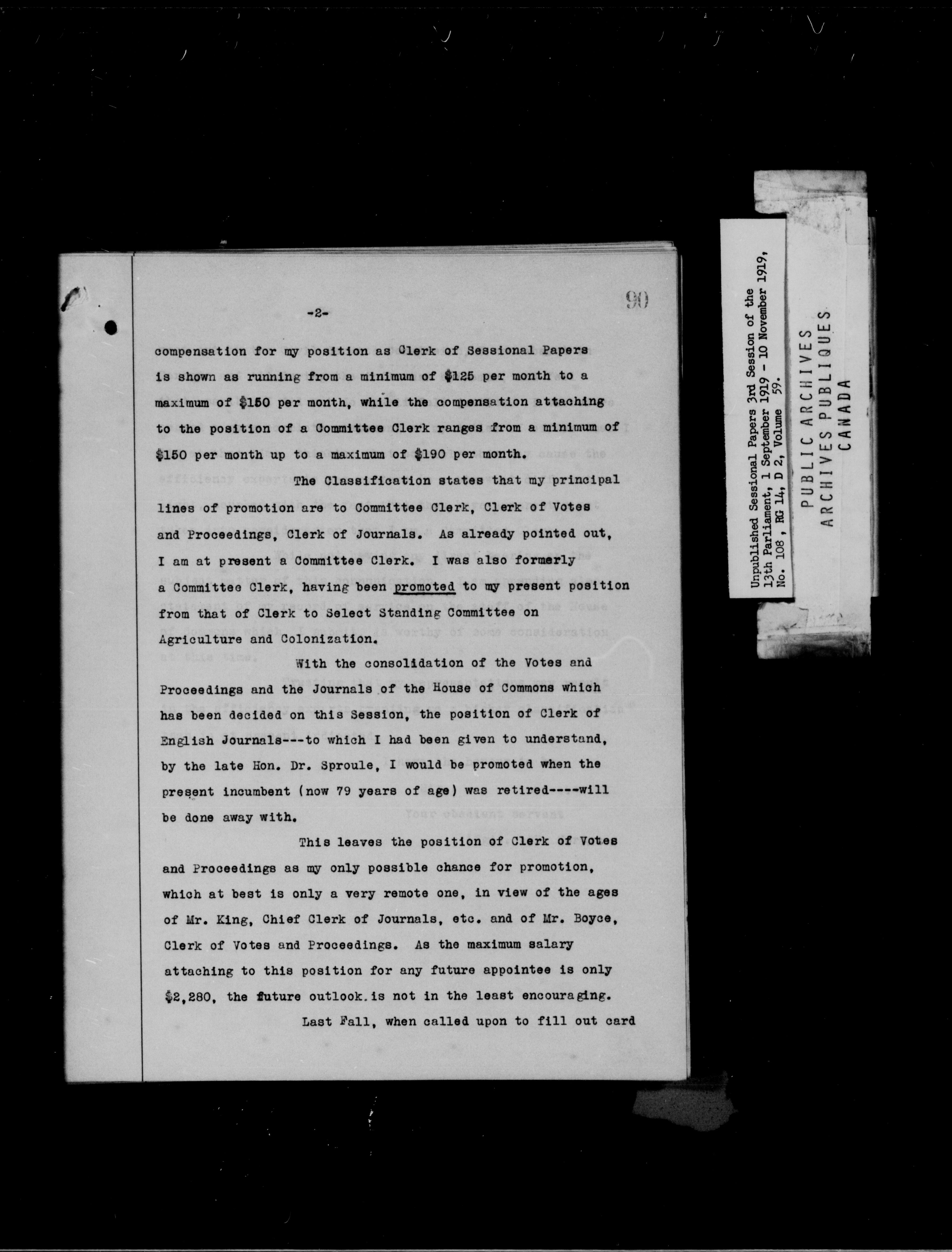 Unpublished Sessional Papers; 3rd Session of the 13th Parliament, 1 Sept. 1919-10 Nov. 1919 - 6946