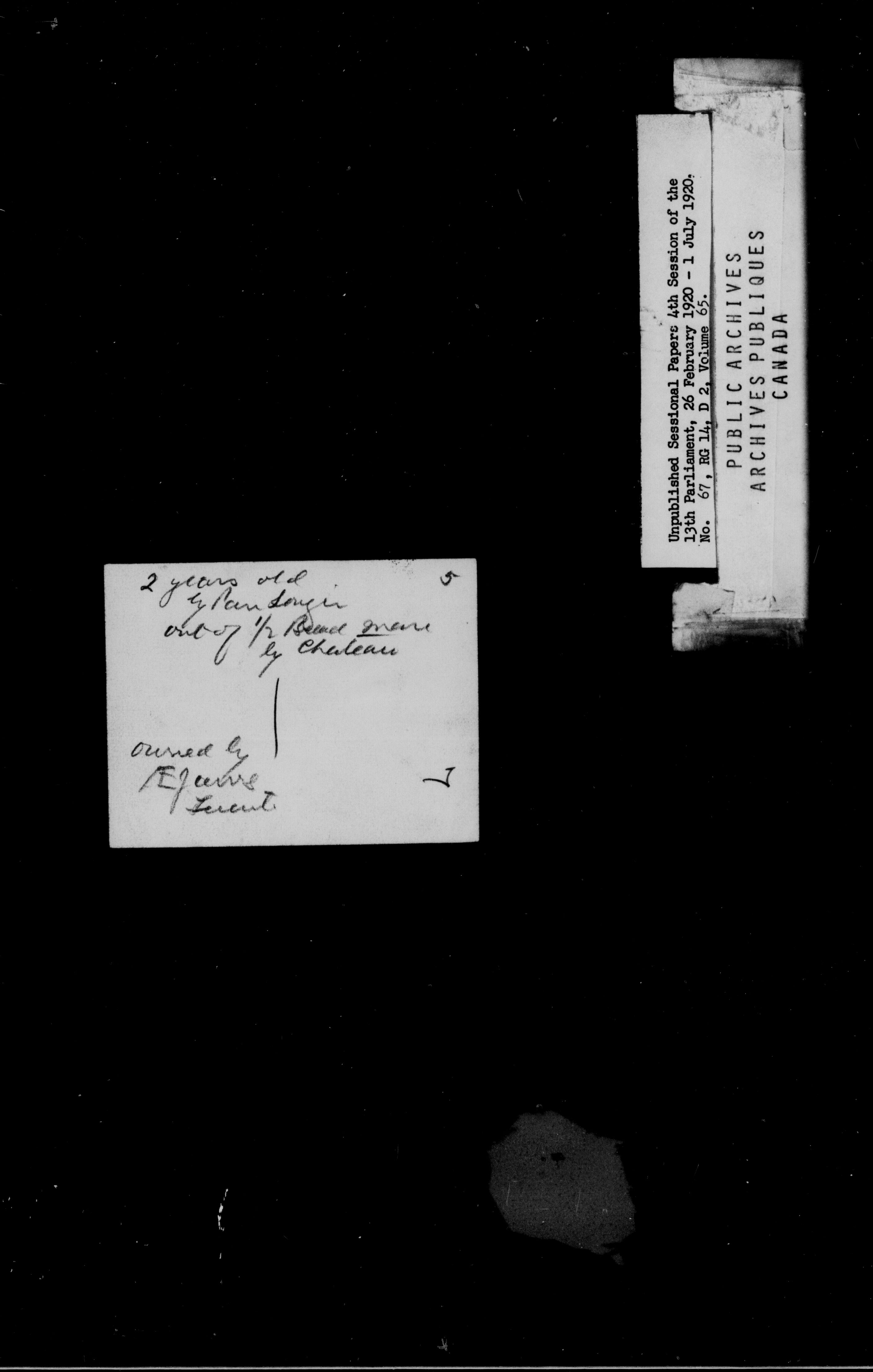 Unpublished Sessional Papers, 4th Session of the 13th Parliamenr, 26 Feb. 1920-1 July 1920 - 6949