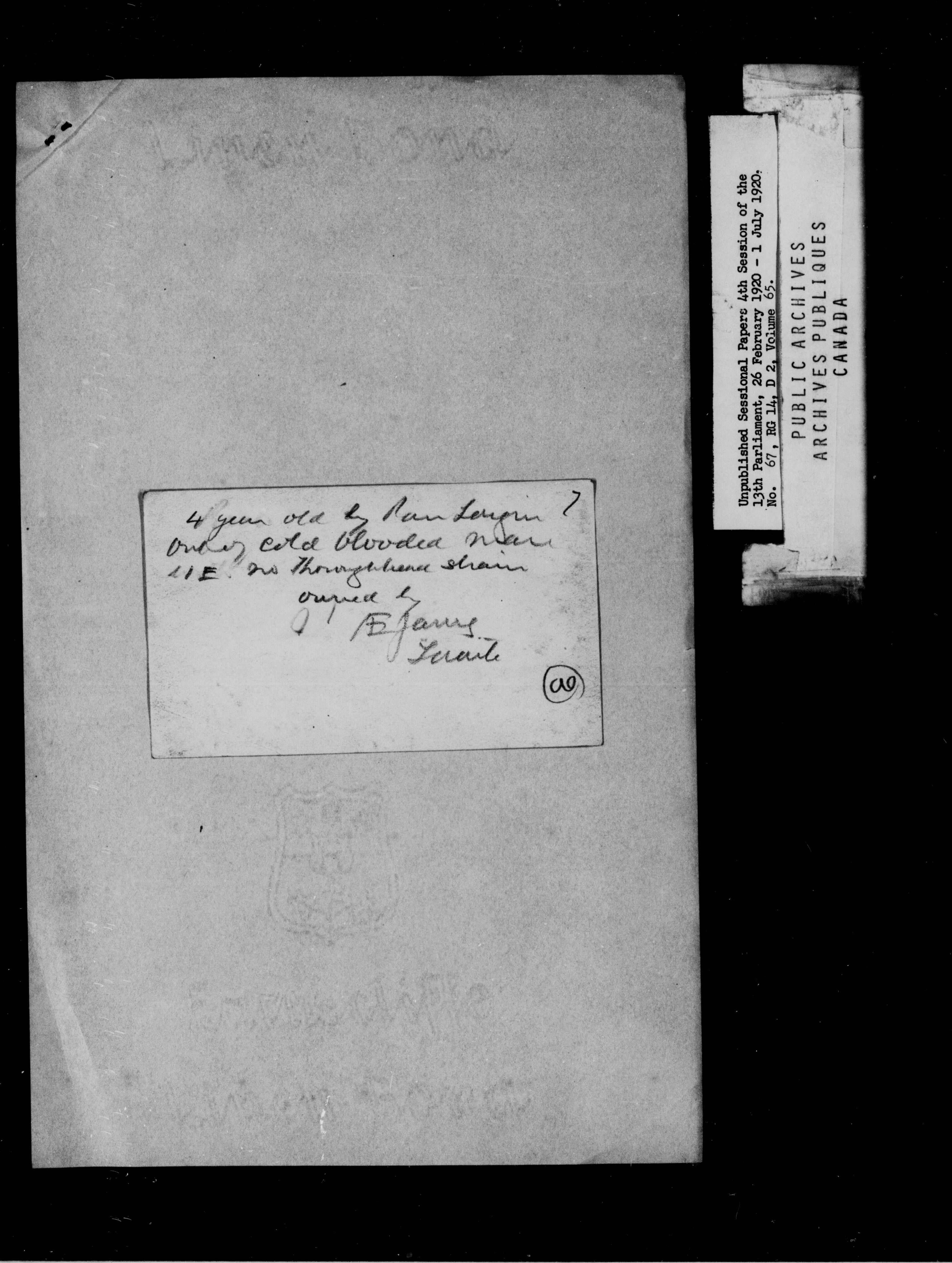 Unpublished Sessional Papers, 4th Session of the 13th Parliamenr, 26 Feb. 1920-1 July 1920 - 6949
