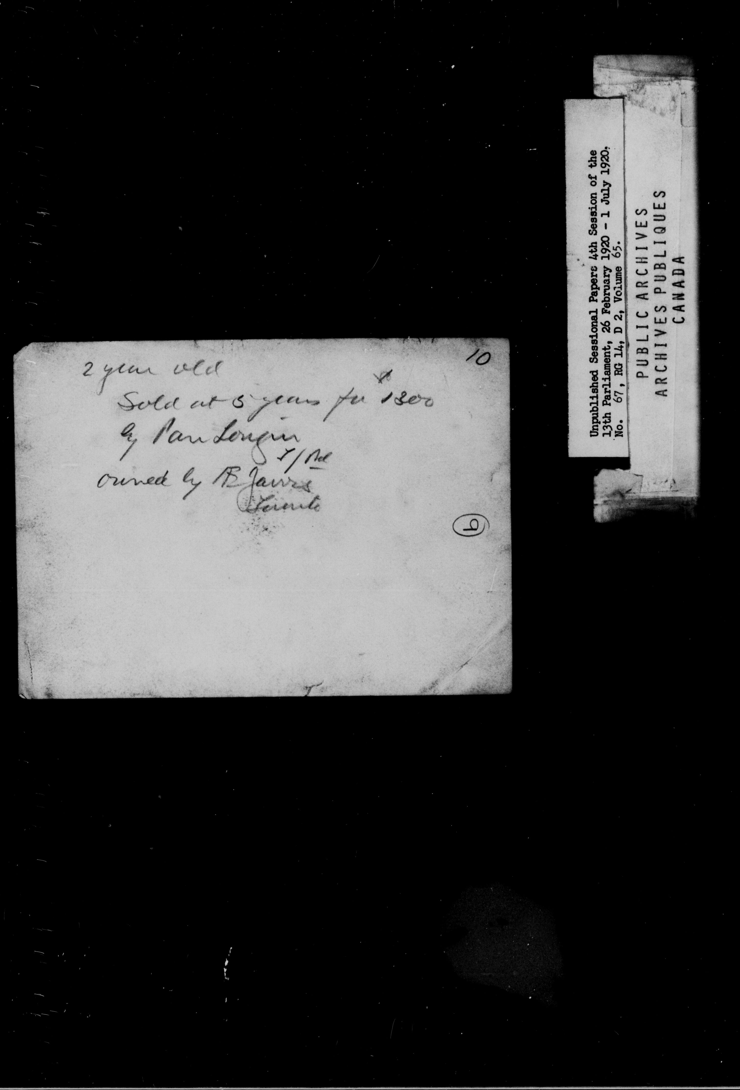 Unpublished Sessional Papers, 4th Session of the 13th Parliamenr, 26 Feb. 1920-1 July 1920 - 6949