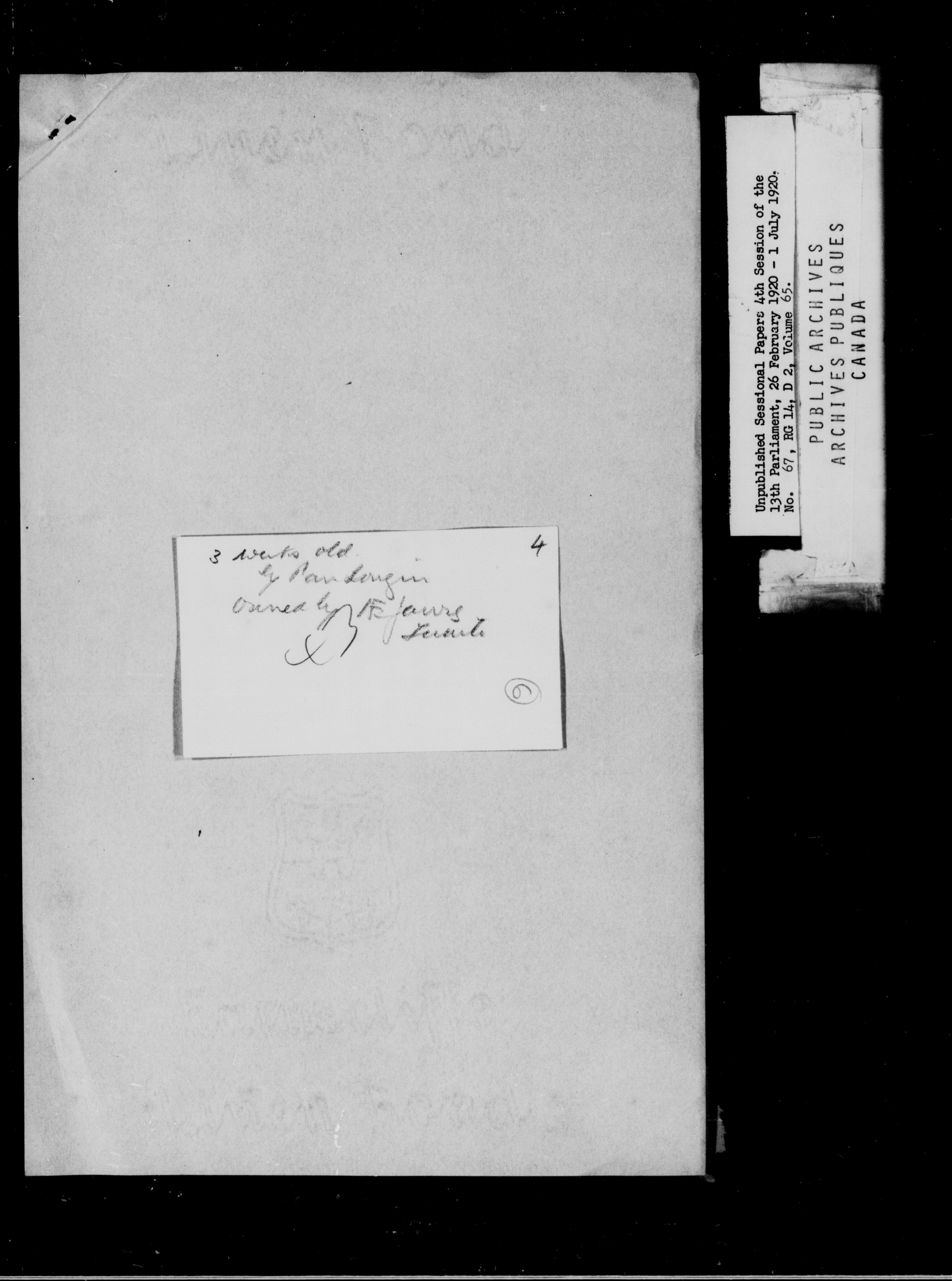 Unpublished Sessional Papers, 4th Session of the 13th Parliamenr, 26 Feb. 1920-1 July 1920 - 6949