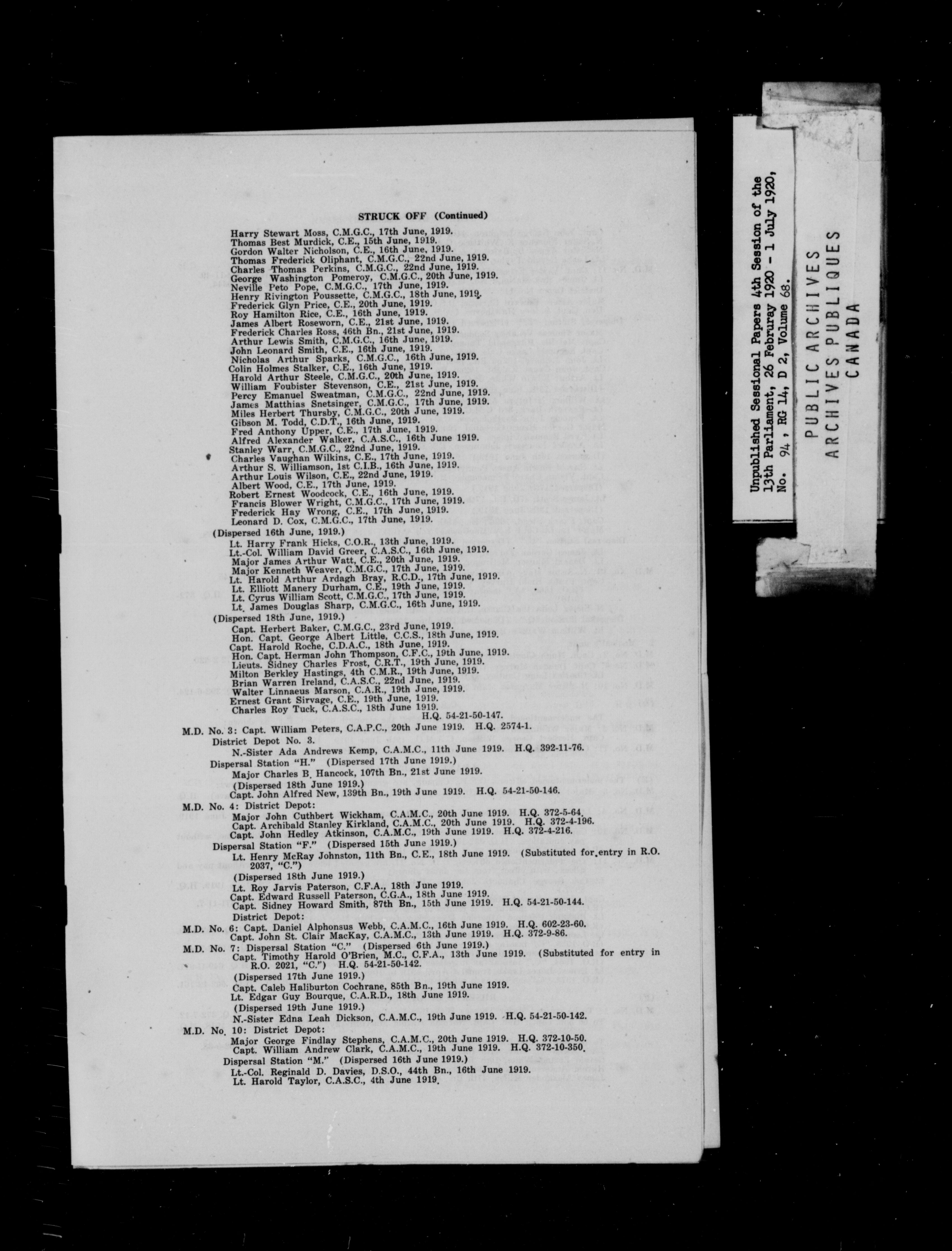 Unpublished Sessional Papers; 4th Session of the 13th Parliament, 26 Feb. 1920-1 July 1920 - 6950