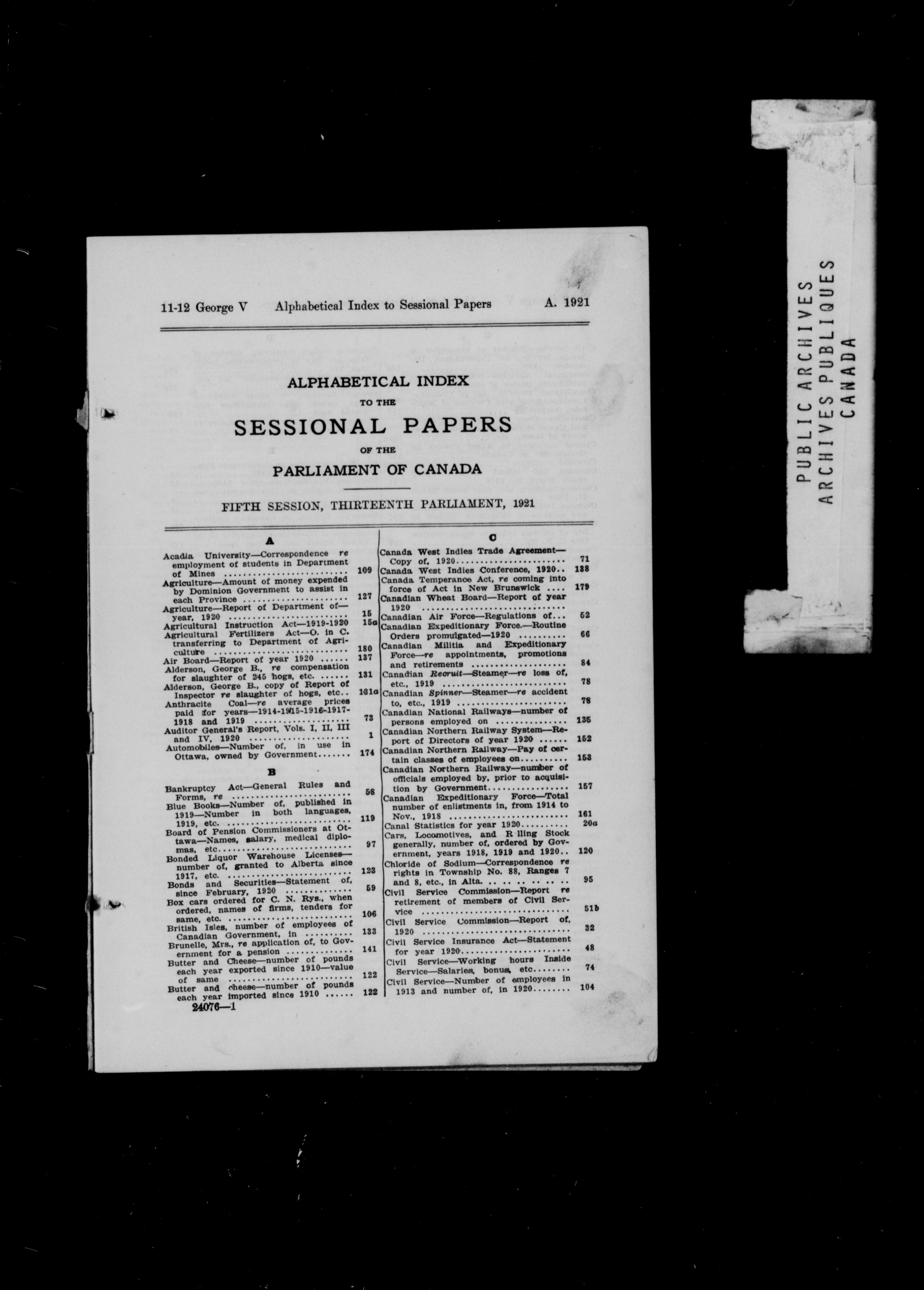 Unpublished Sessional Papers; 4th Session of the 13th Parliament, 26 Feb. 1920-1 July 1920 - 6954