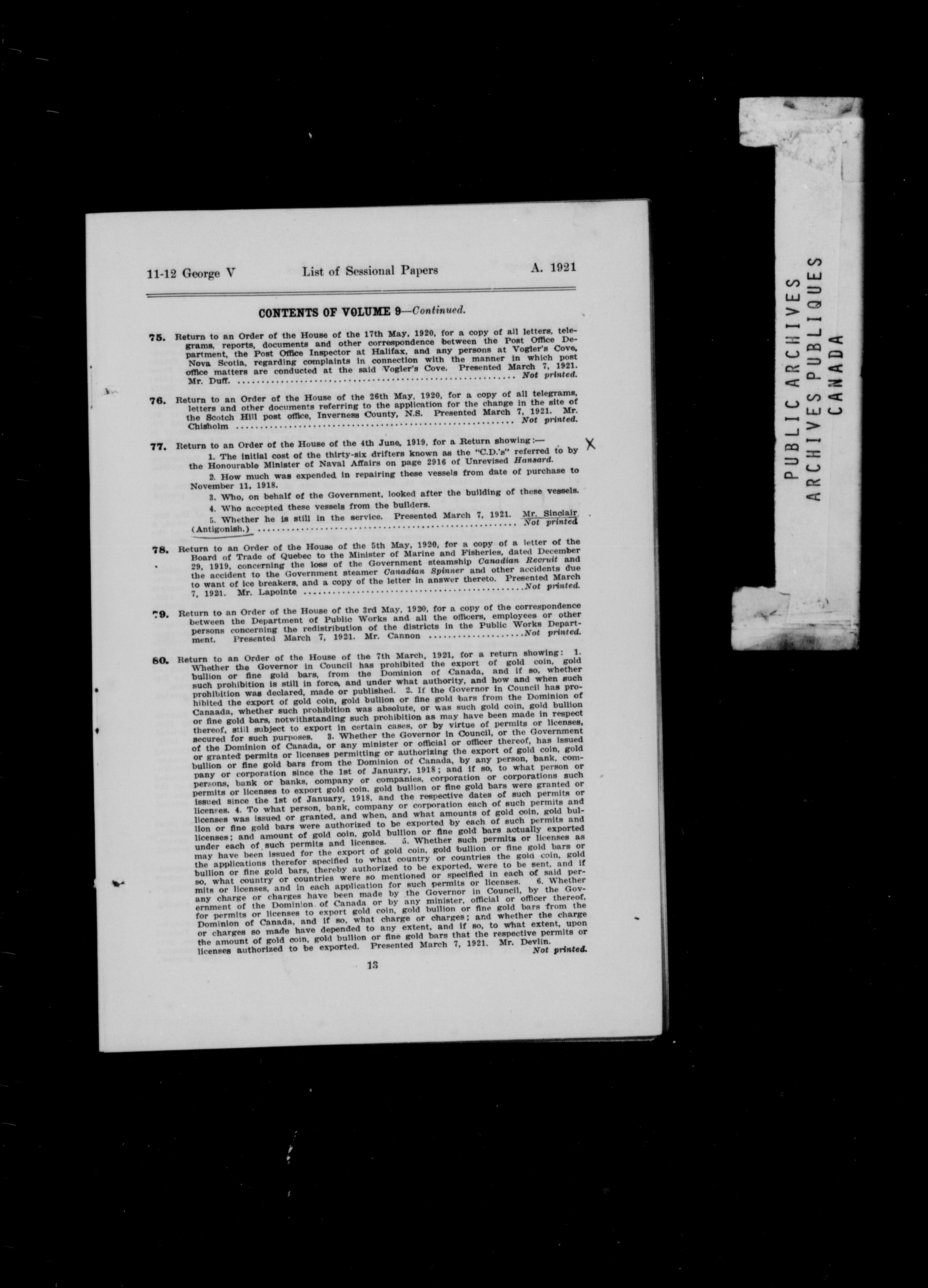 Unpublished Sessional Papers; 4th Session of the 13th Parliament, 26 Feb. 1920-1 July 1920 - 6954