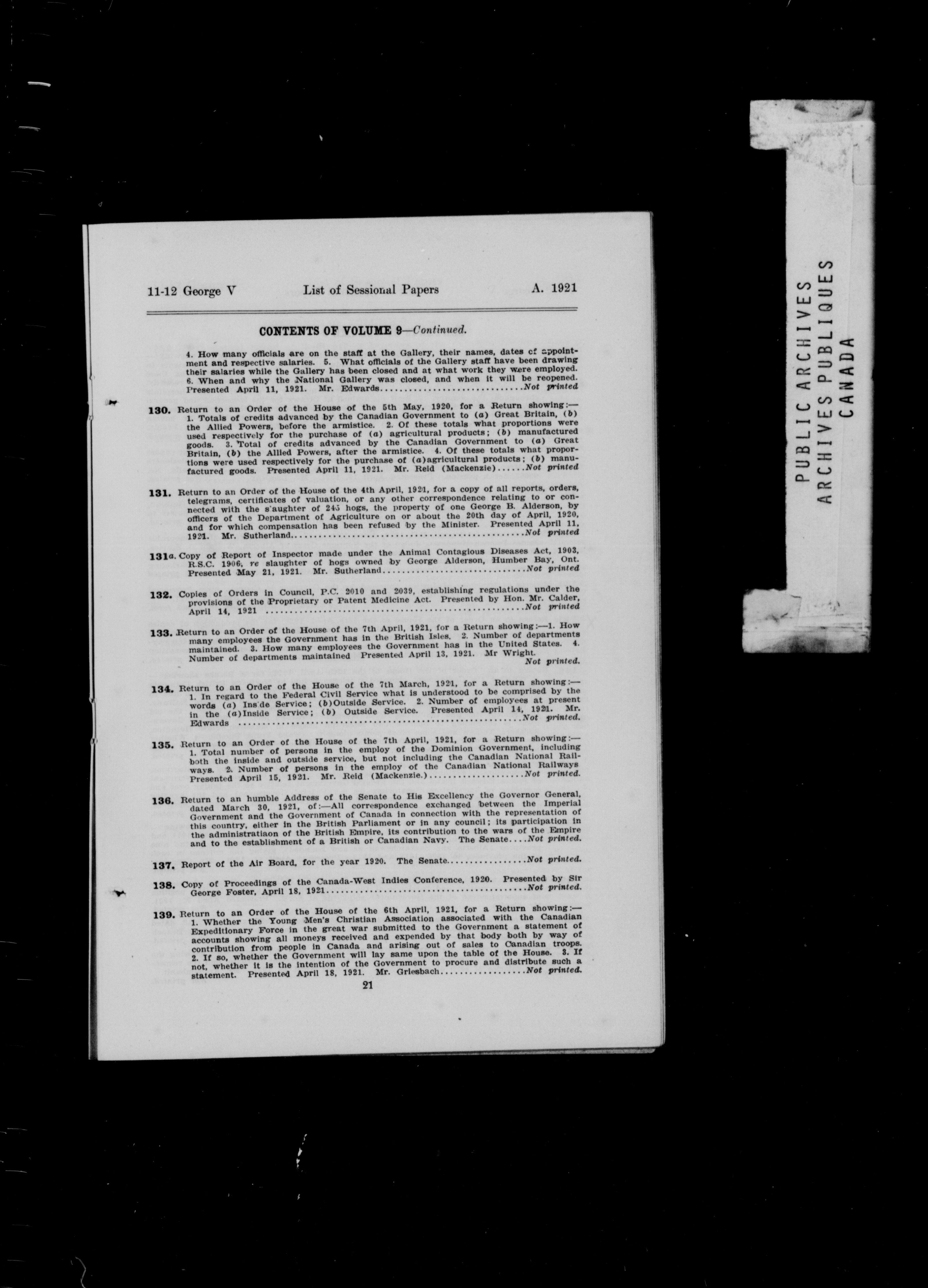 Unpublished Sessional Papers; 4th Session of the 13th Parliament, 26 Feb. 1920-1 July 1920 - 6954