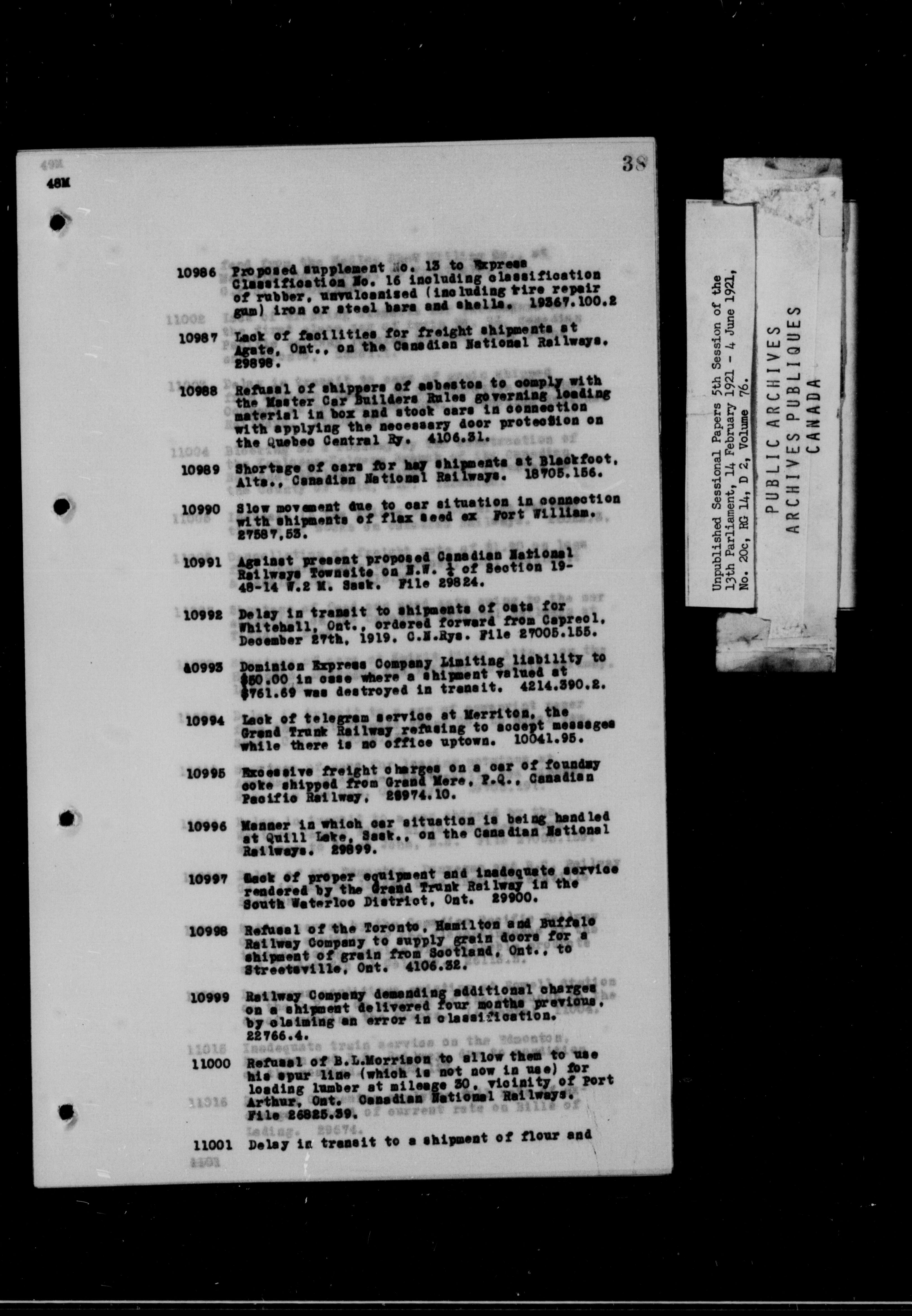 Unpublished Sessional Papers; 5th Session of the 13th Parliament, 14 Feb. 1921-4 June 1921 - 6955