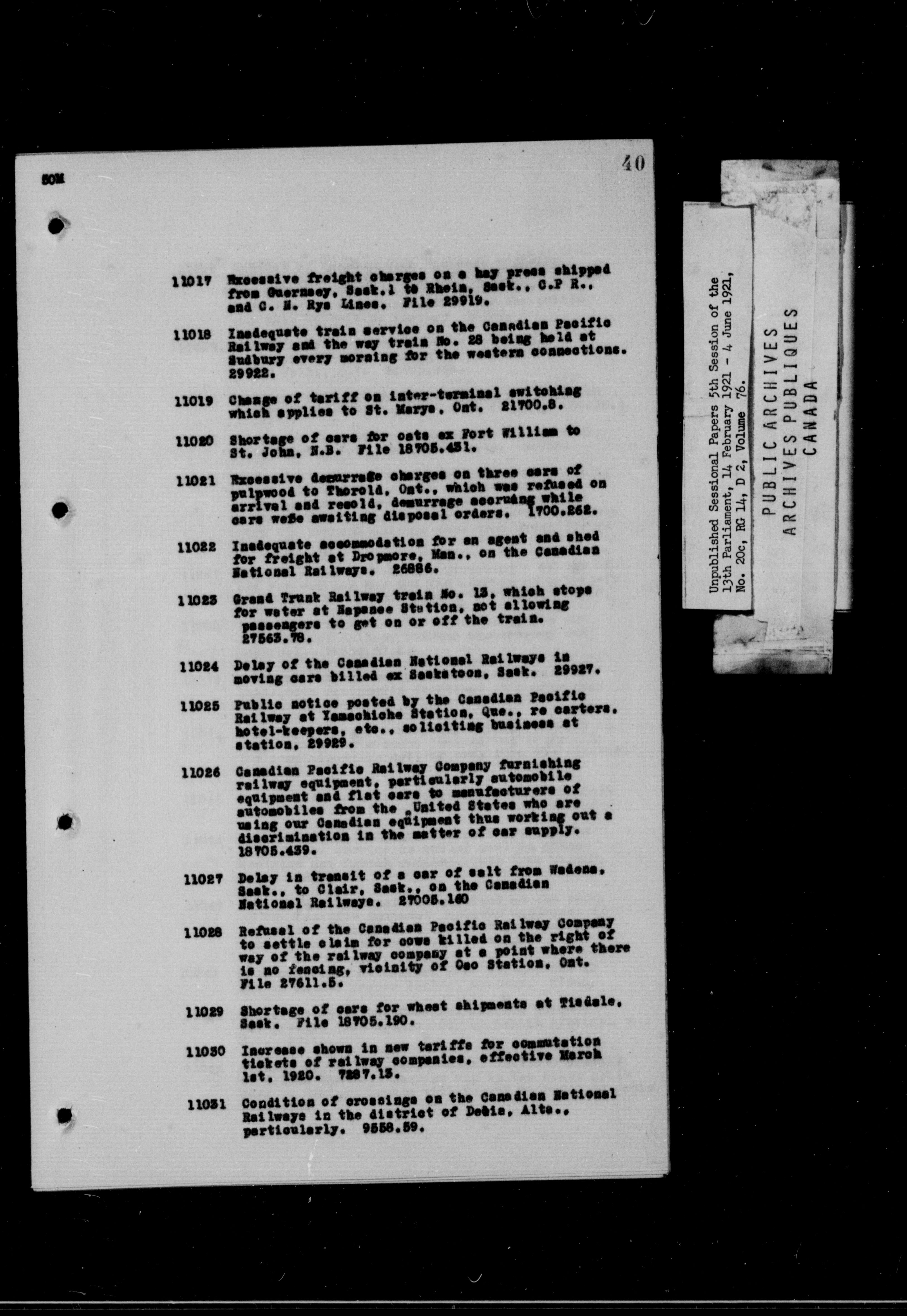 Unpublished Sessional Papers; 5th Session of the 13th Parliament, 14 Feb. 1921-4 June 1921 - 6955