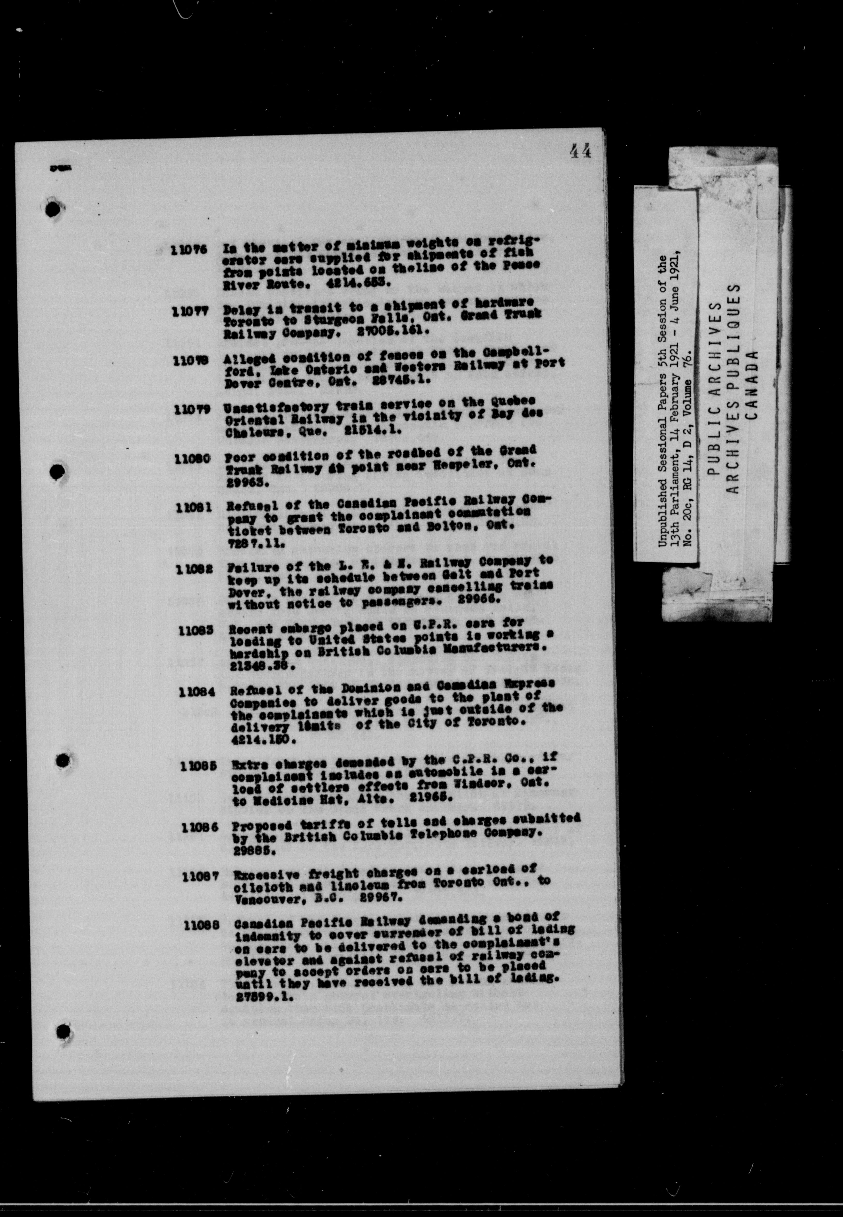 Unpublished Sessional Papers; 5th Session of the 13th Parliament, 14 Feb. 1921-4 June 1921 - 6955