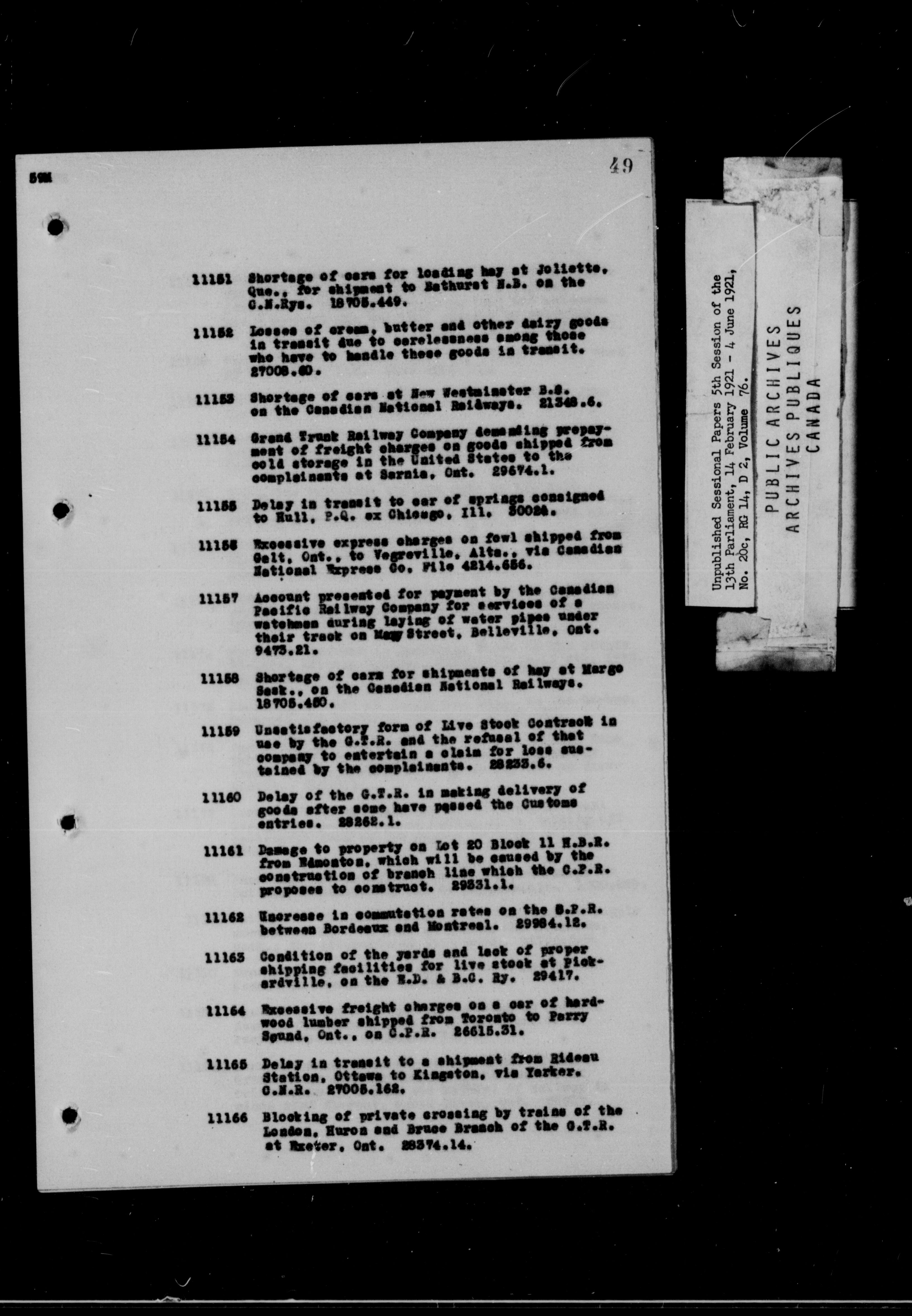 Unpublished Sessional Papers; 5th Session of the 13th Parliament, 14 Feb. 1921-4 June 1921 - 6955