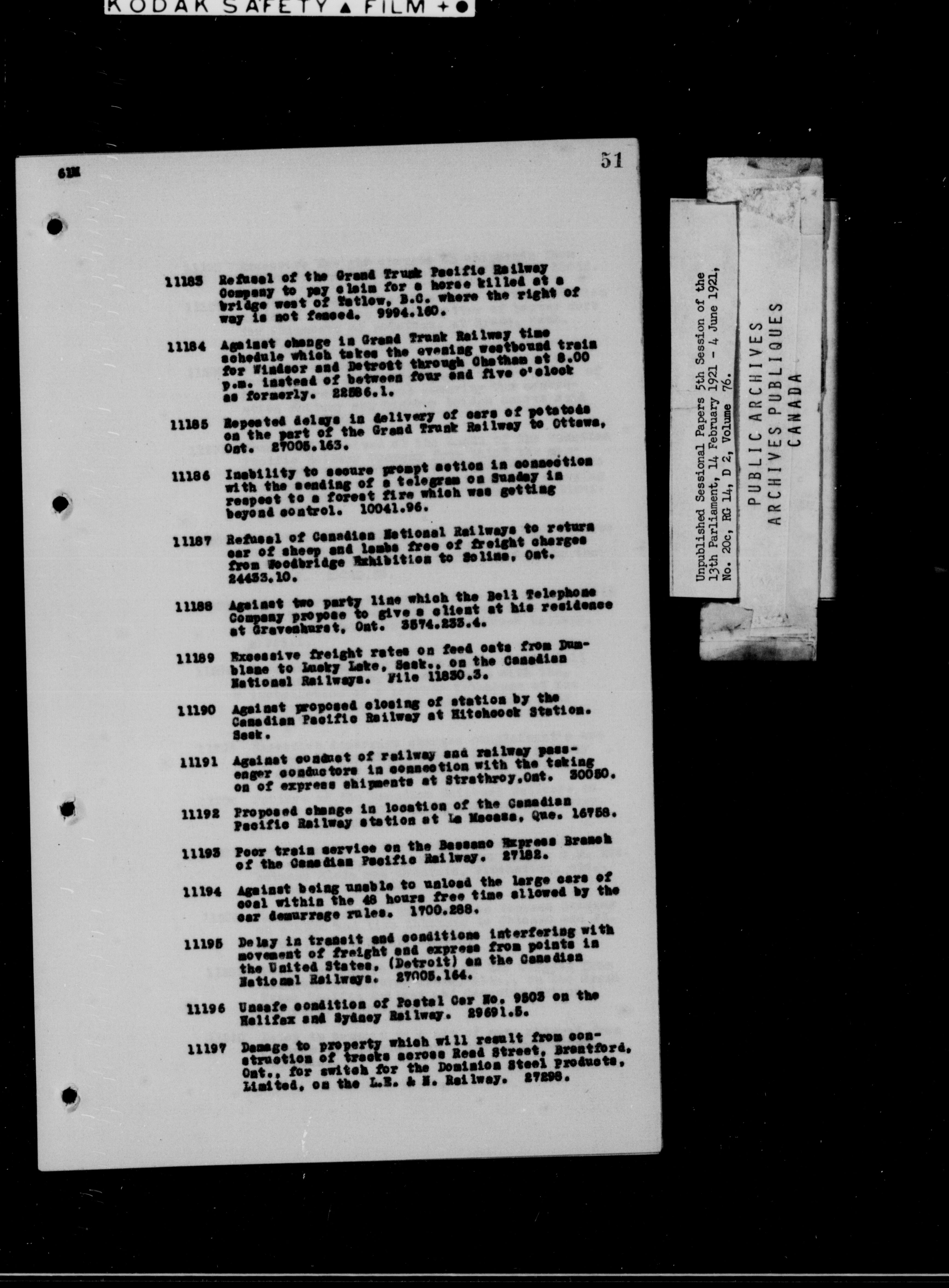 Unpublished Sessional Papers; 5th Session of the 13th Parliament, 14 Feb. 1921-4 June 1921 - 6955