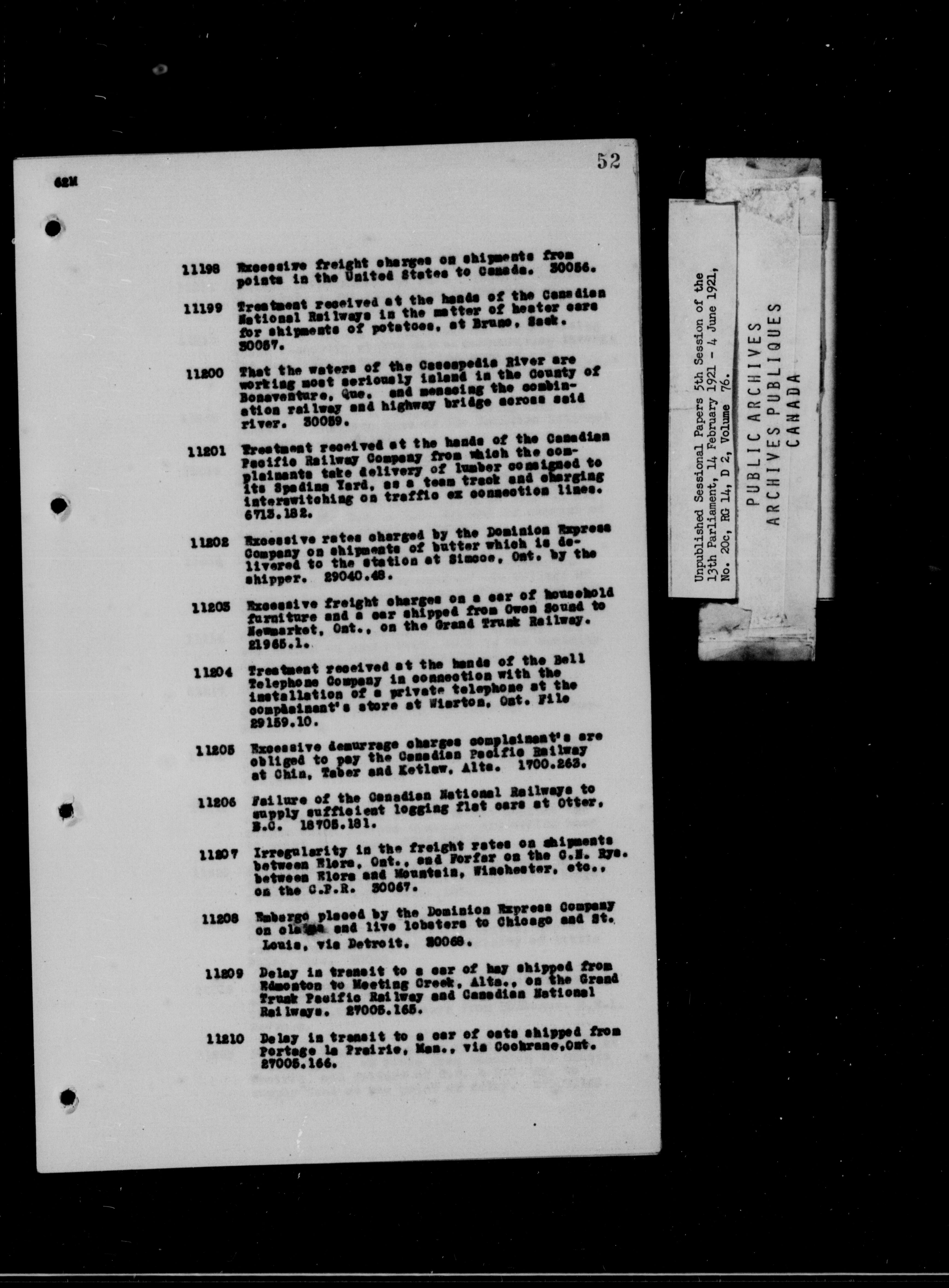 Unpublished Sessional Papers; 5th Session of the 13th Parliament, 14 Feb. 1921-4 June 1921 - 6955