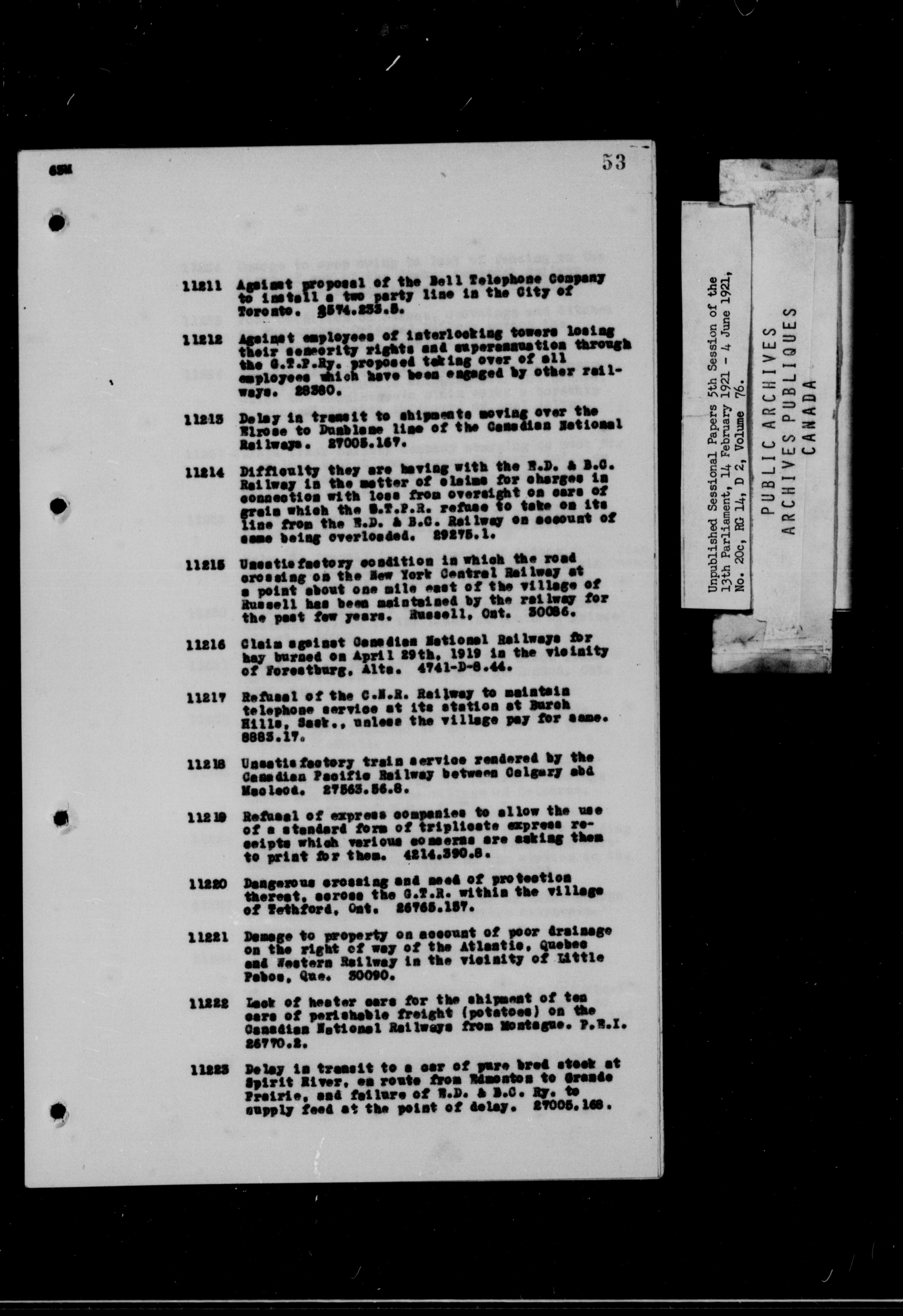 Unpublished Sessional Papers; 5th Session of the 13th Parliament, 14 Feb. 1921-4 June 1921 - 6955
