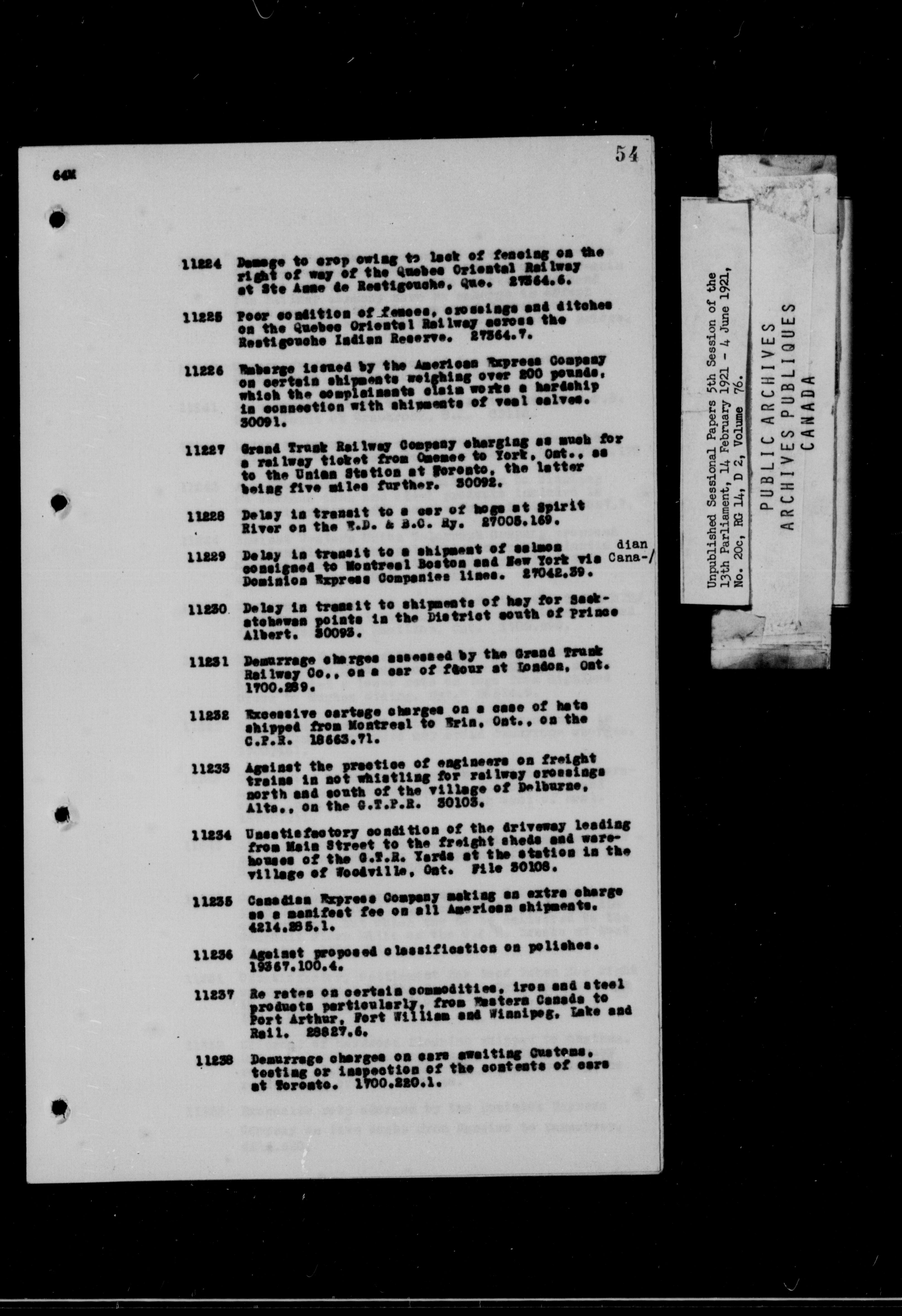 Unpublished Sessional Papers; 5th Session of the 13th Parliament, 14 Feb. 1921-4 June 1921 - 6955
