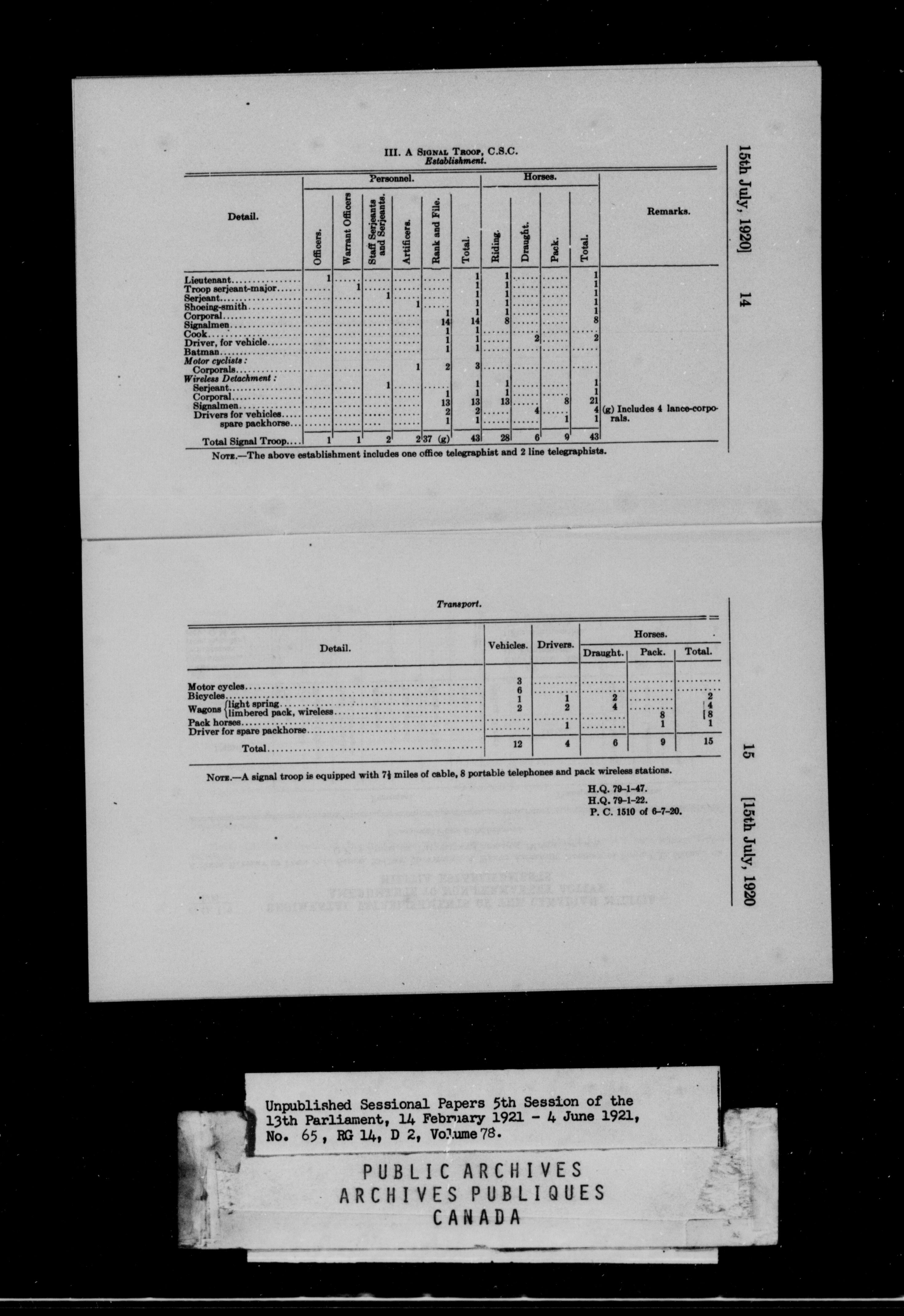 Unpublished Sessional Papers; 5th Session of the 13th Parliament, 14 Feb. 1921-4 June 1921 - 6956