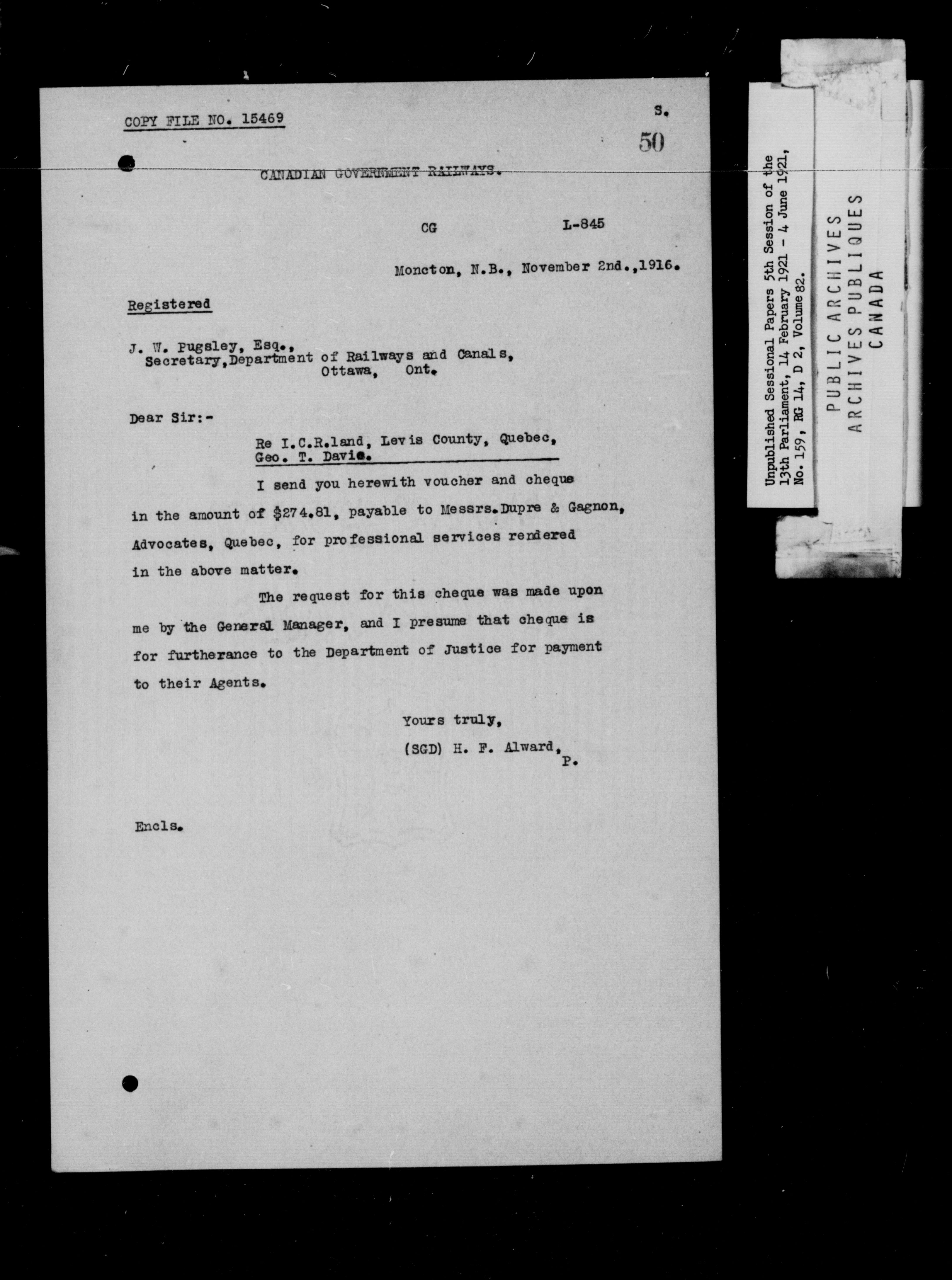 Unpublished Sessional Papers; 5th Session of the 13th Parliament, 14 Feb. 1921-4 June 1921 - 6958