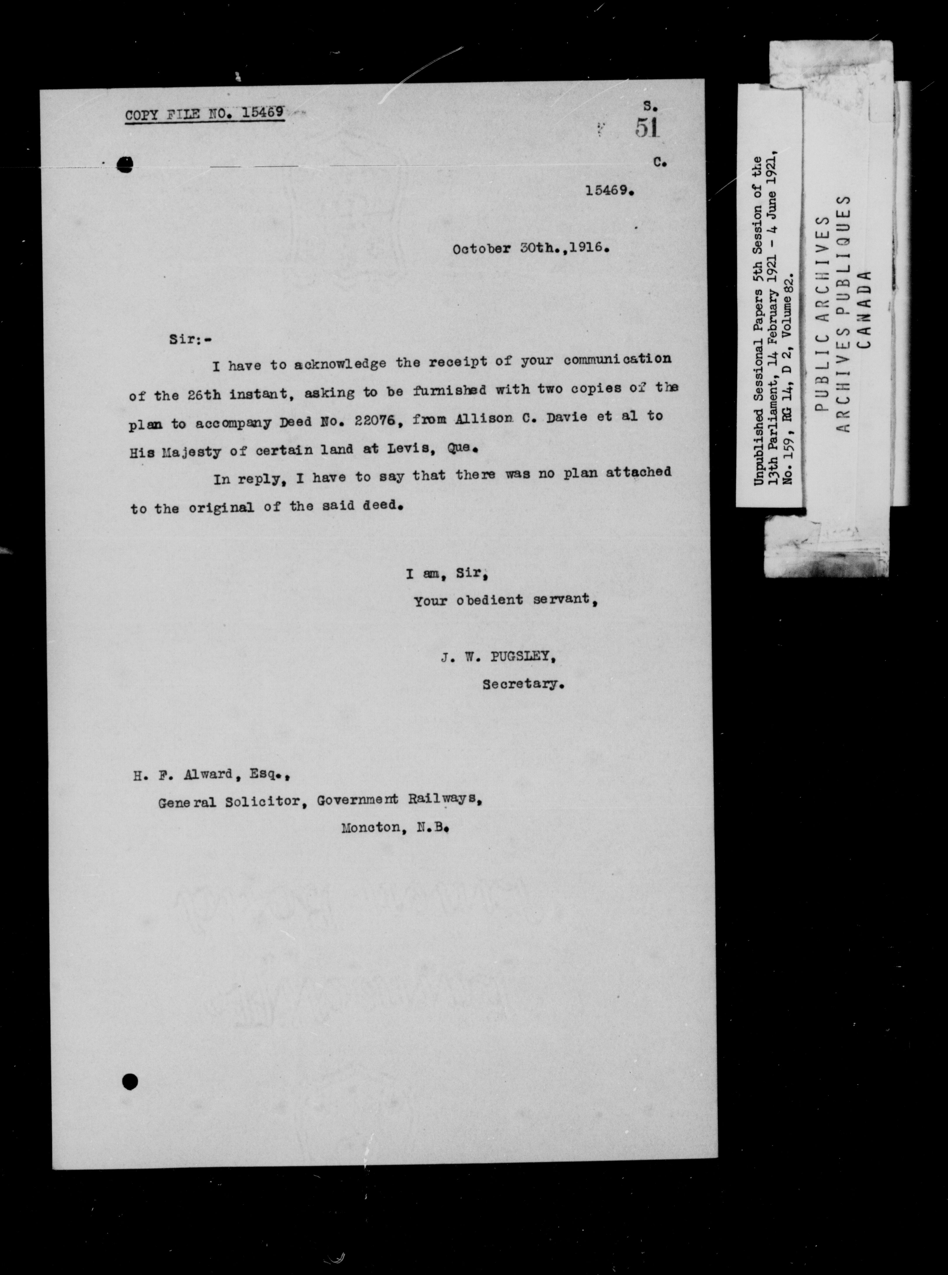 Unpublished Sessional Papers; 5th Session of the 13th Parliament, 14 Feb. 1921-4 June 1921 - 6958