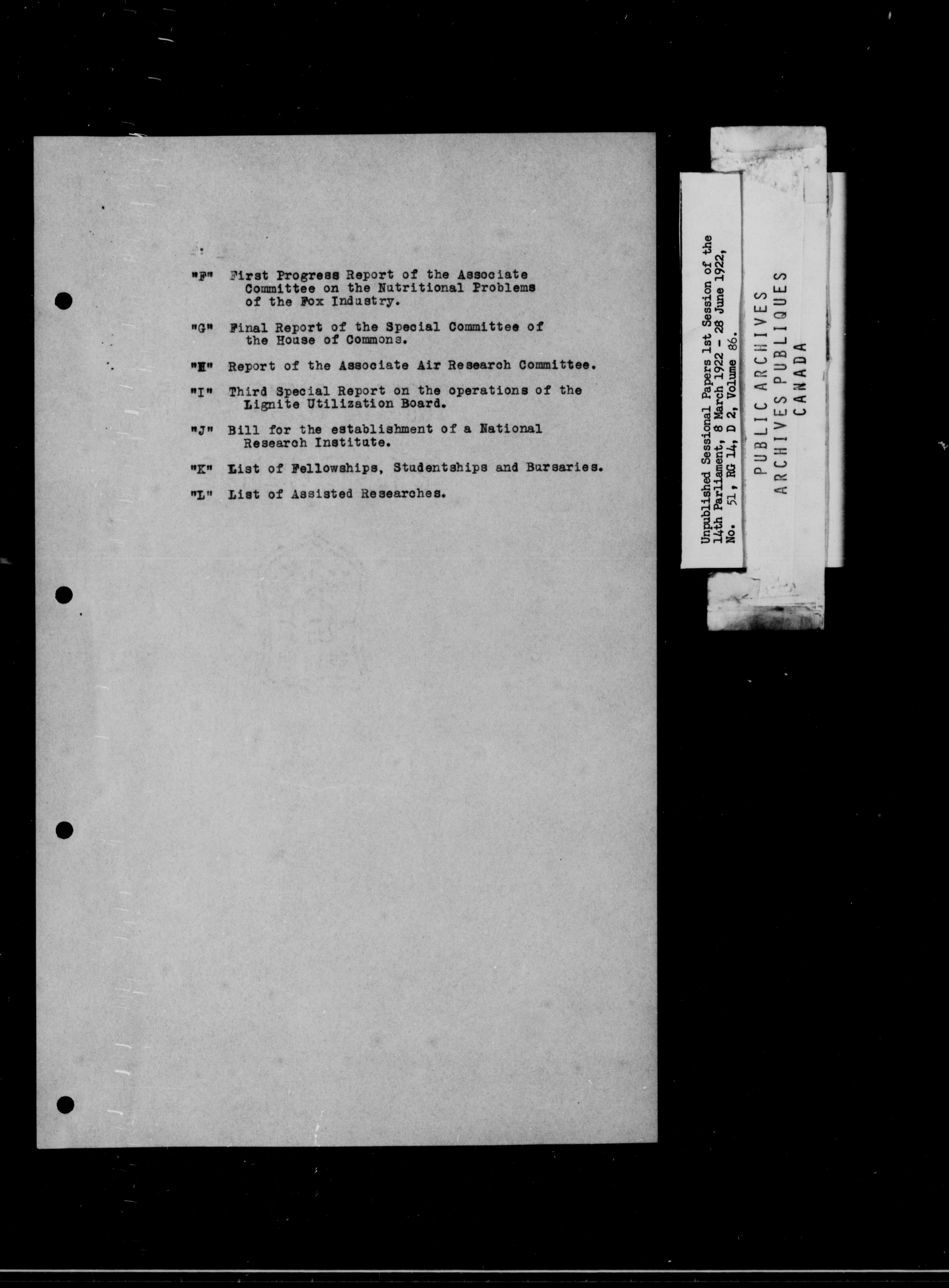 Unpublished Sessional Papers; 1st Session of the 14th Parliament, 8 March 1922-28 June 1922 - 6959