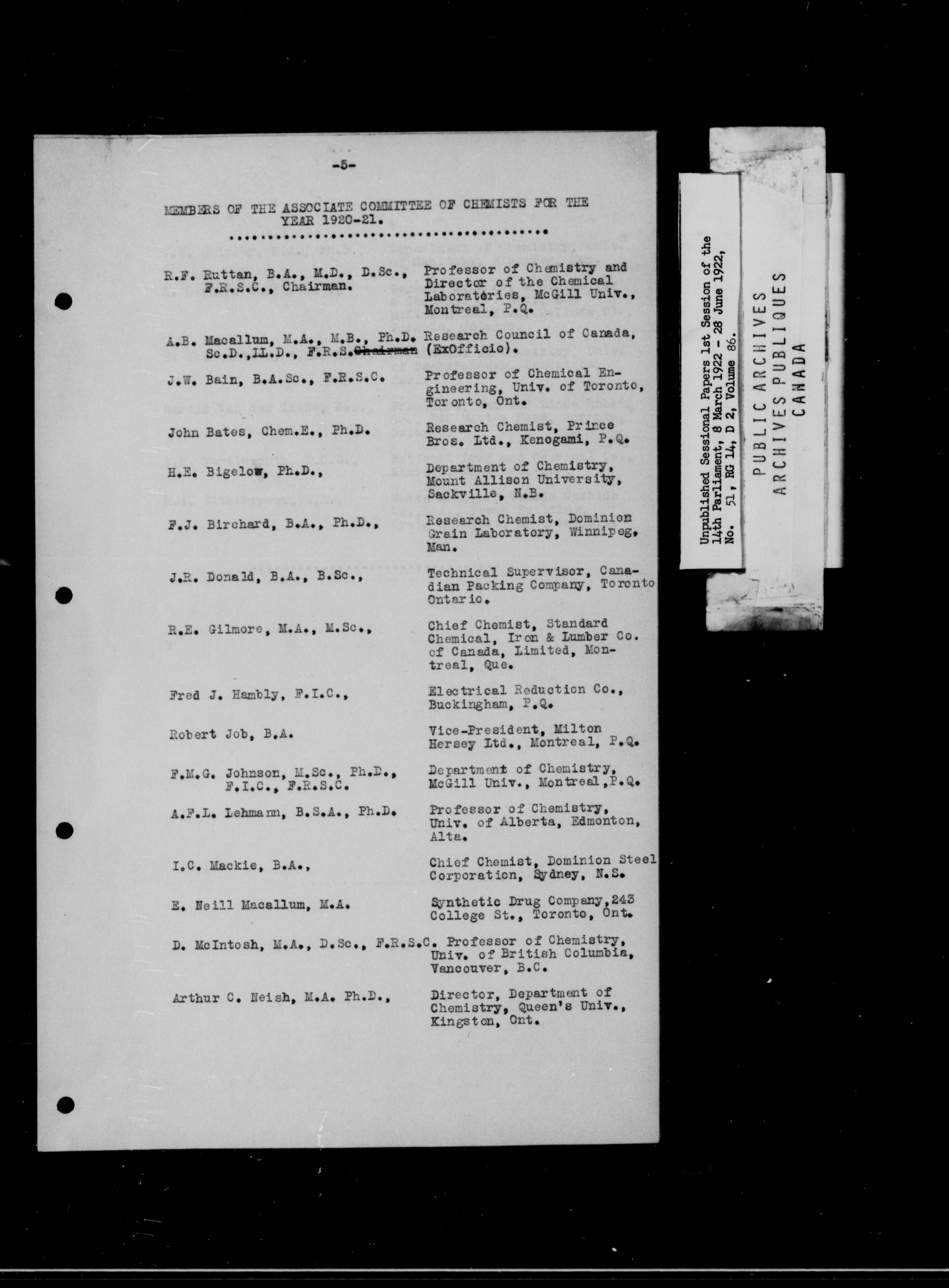 Unpublished Sessional Papers; 1st Session of the 14th Parliament, 8 March 1922-28 June 1922 - 6959