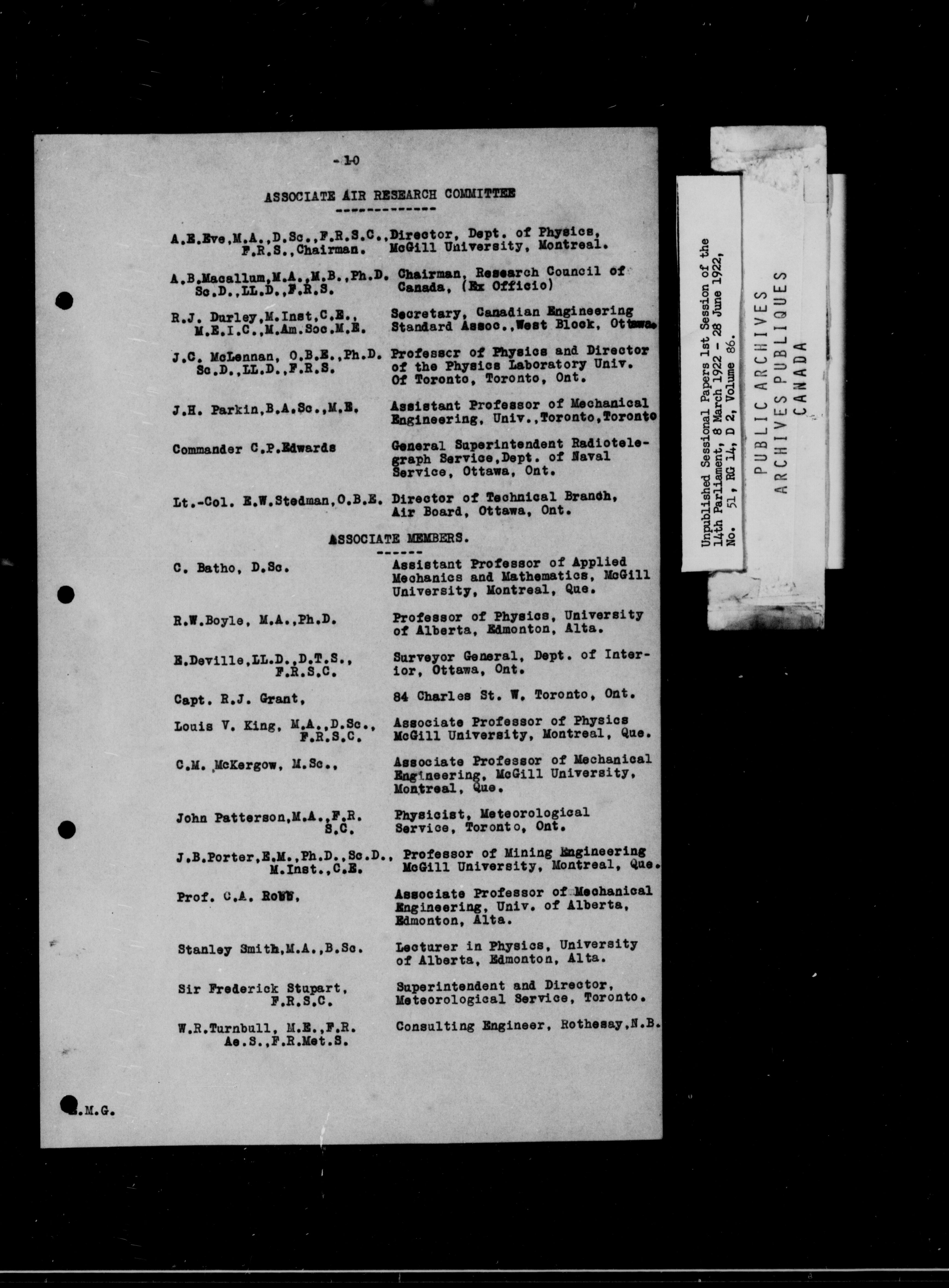 Unpublished Sessional Papers; 1st Session of the 14th Parliament, 8 March 1922-28 June 1922 - 6959