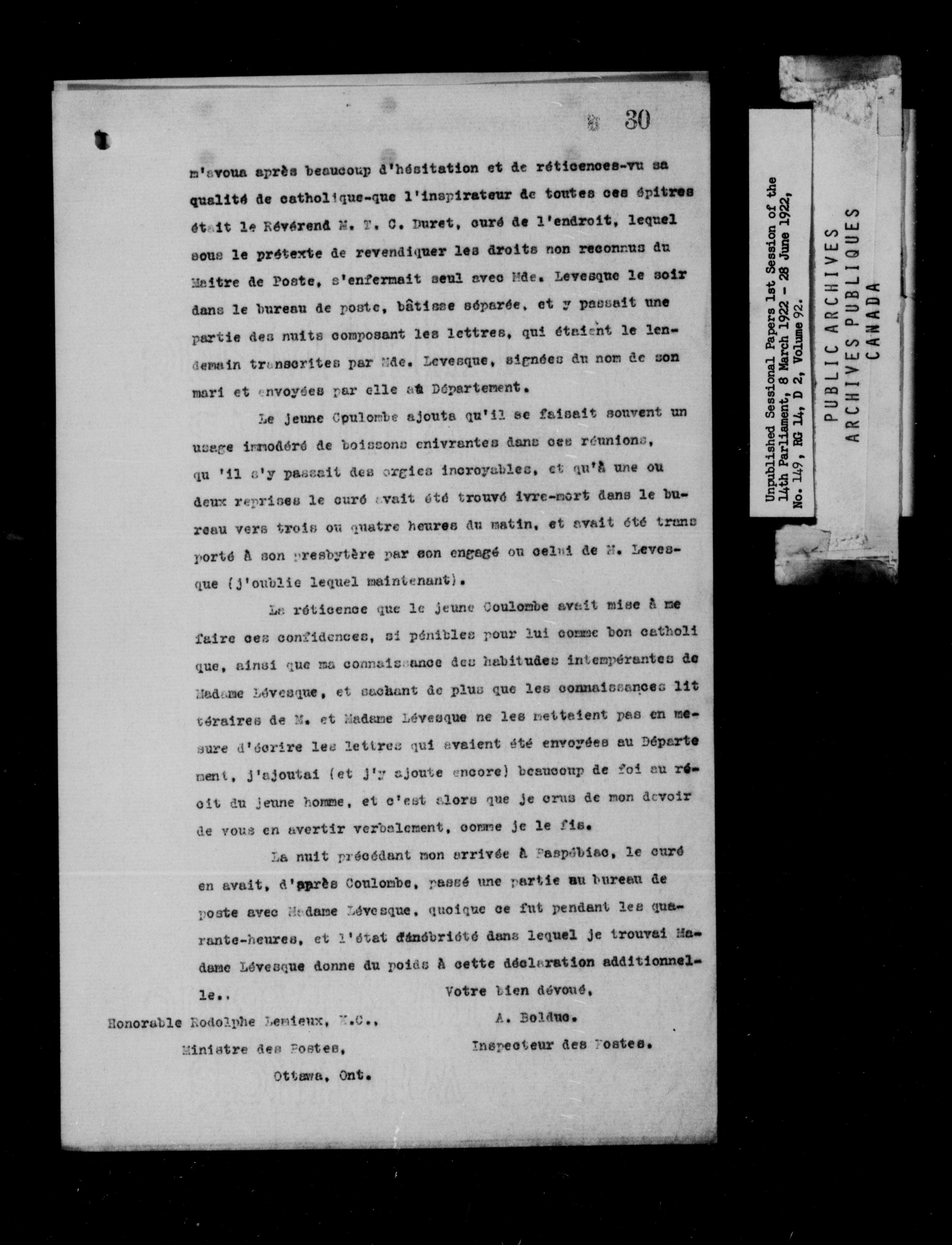 Unpublished Sessional Papers; 1st Session of the 14th Parliament, 8 March 1922-28 June 1922 - 6962