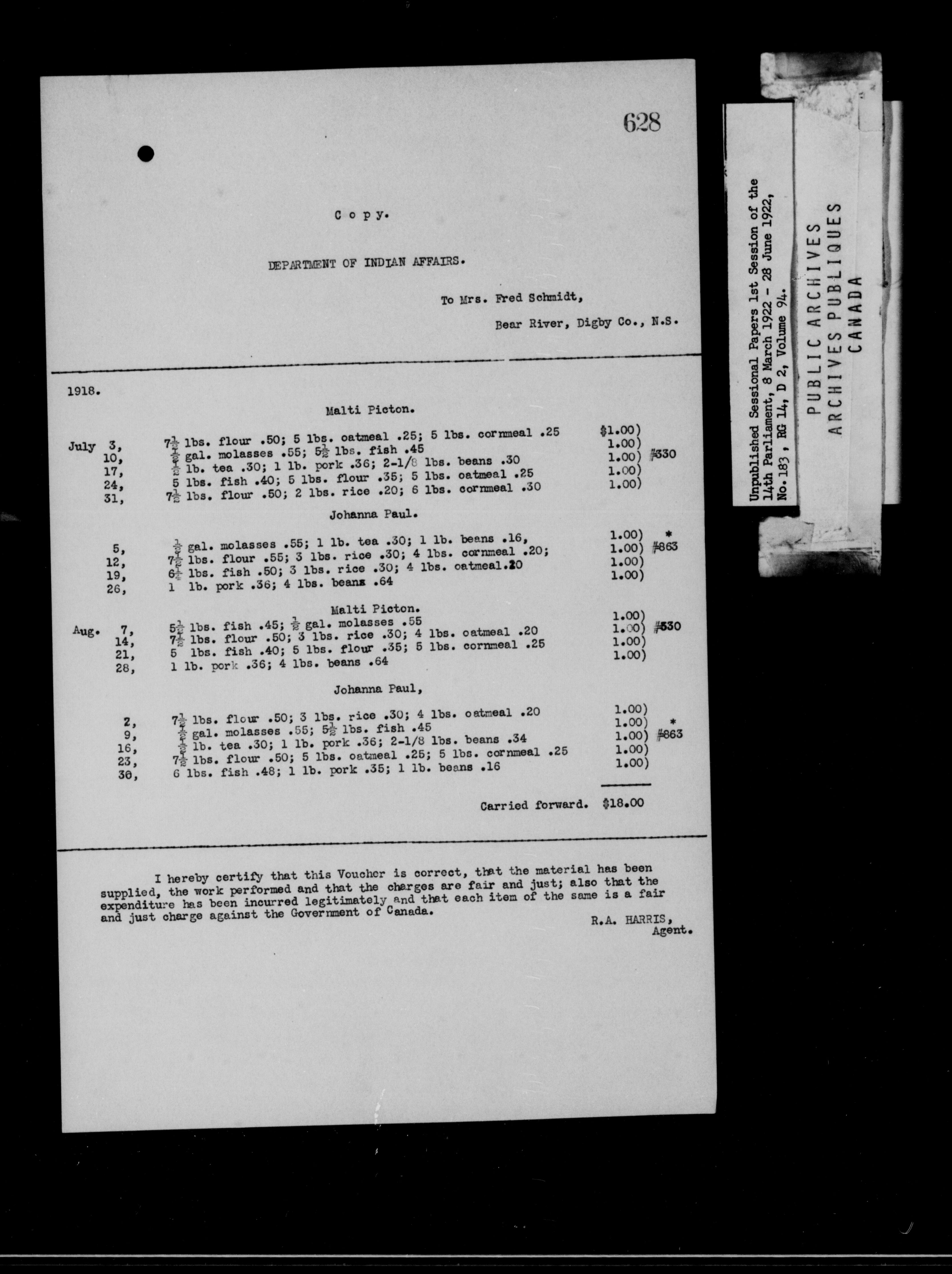 Unpublished Sessional Papers; 1st Session of the 14th Parliament, 8 March 1922-28 June 1922 - 6963