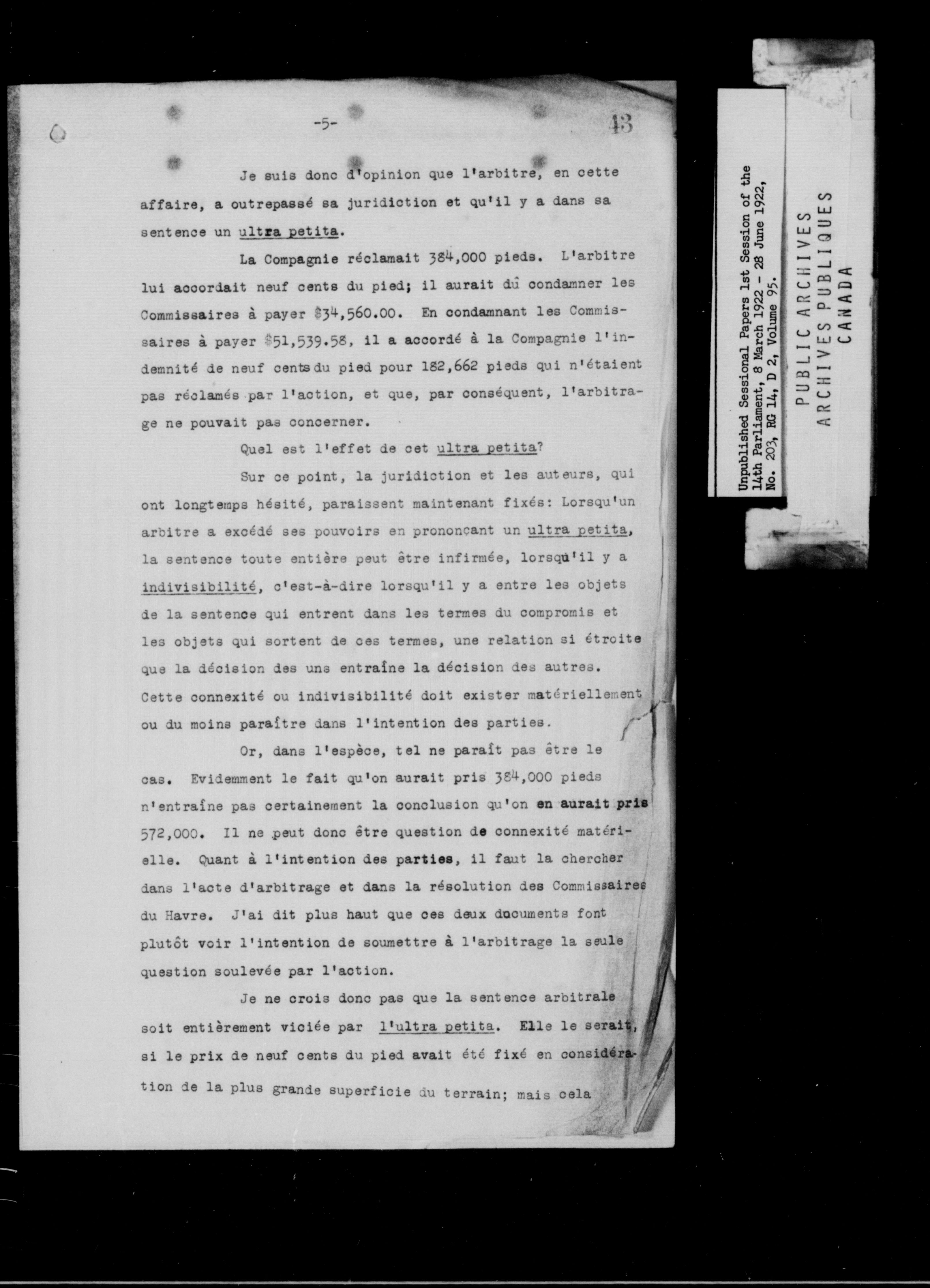 Unpublished Sessional Papers; 1st Session of the 14th Parliament, 8 March 1922-28 June 1922 - 6963