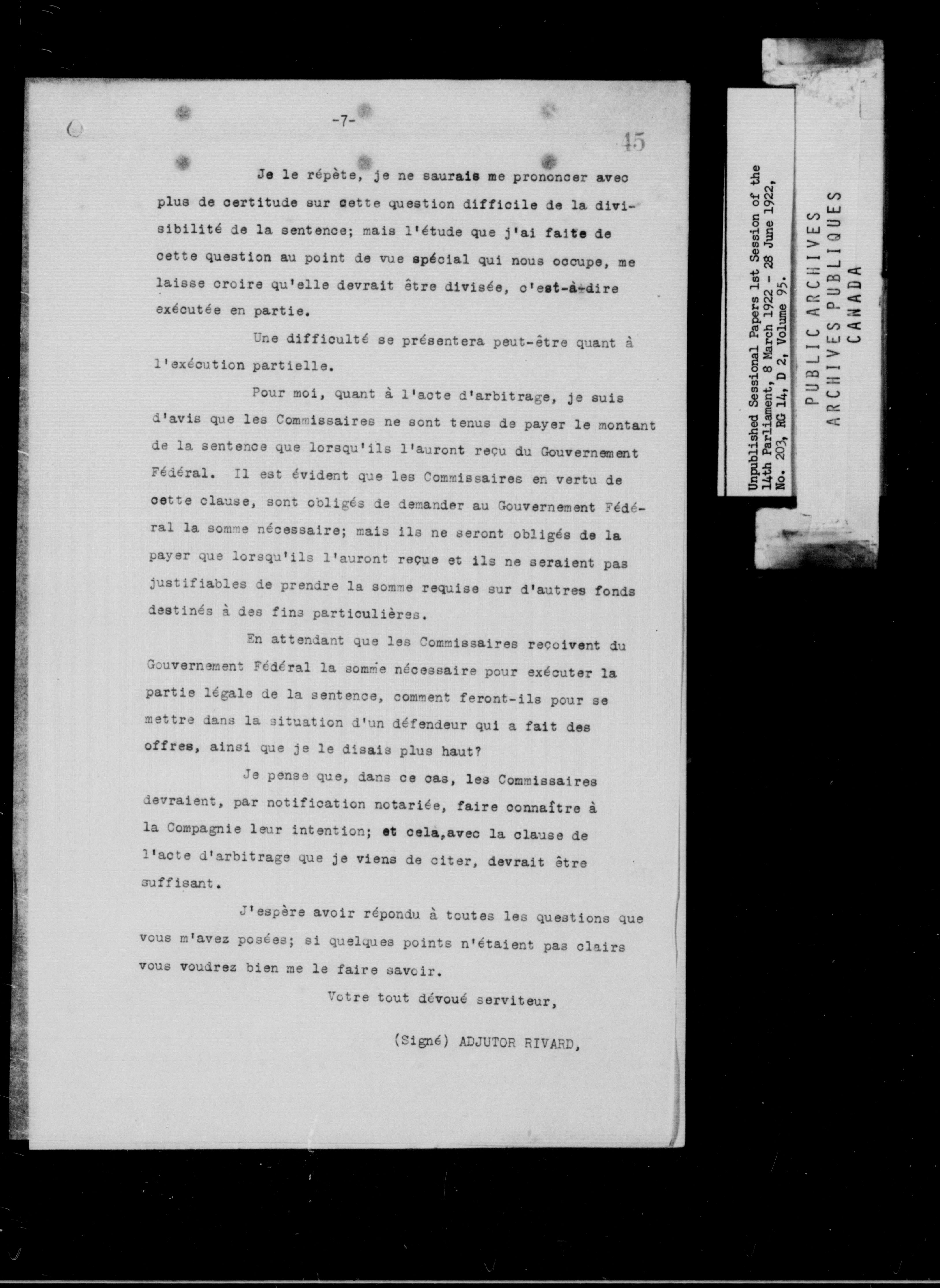 Unpublished Sessional Papers; 1st Session of the 14th Parliament, 8 March 1922-28 June 1922 - 6963